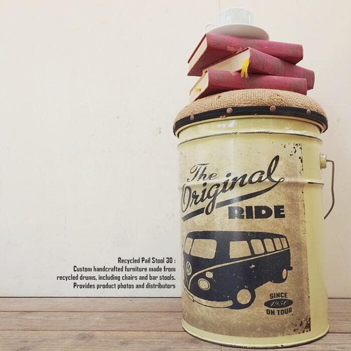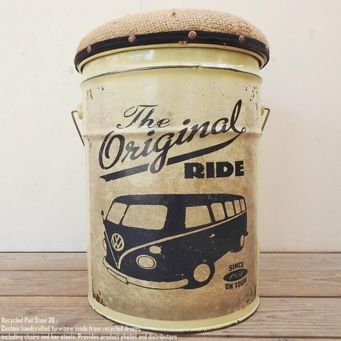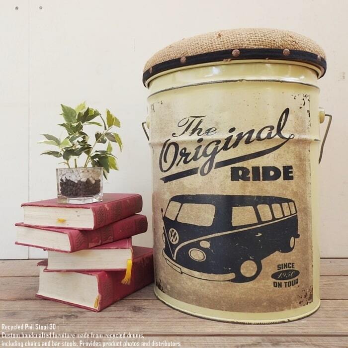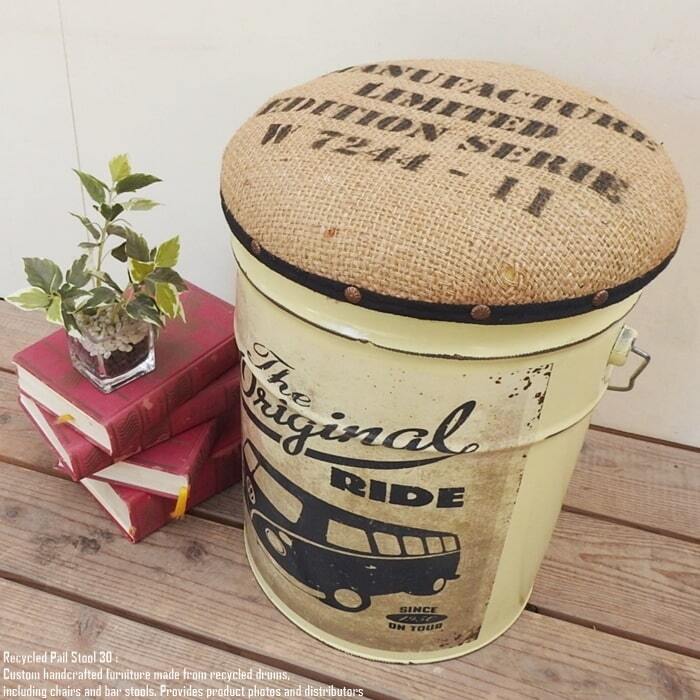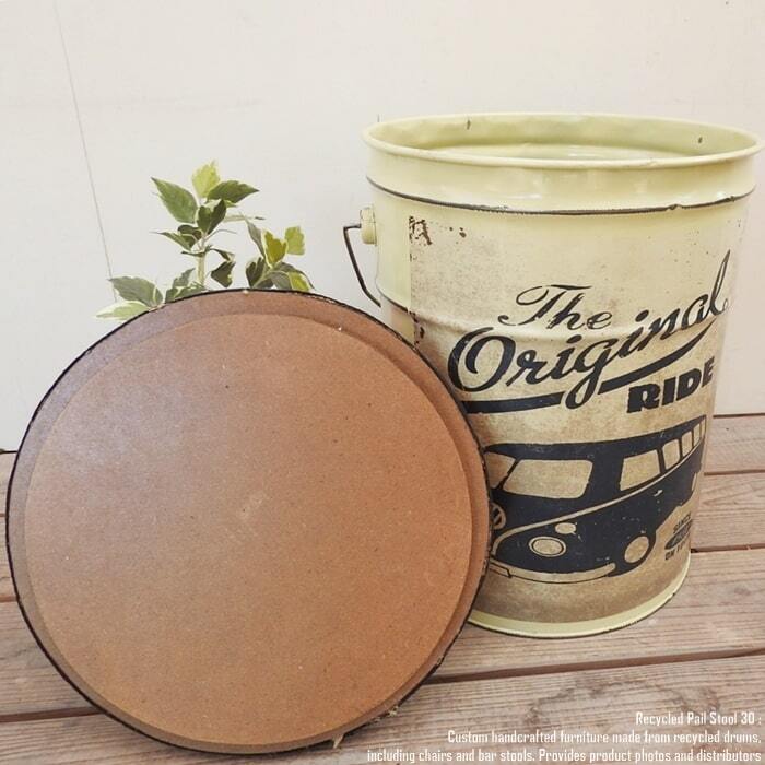 ペンキやオイルが入っていた使用済みのペール缶を可愛いスツールへリメイクいたしました。