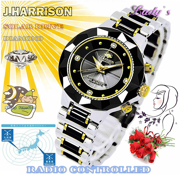 J.HARRISON ジョンハリソン 4石 天然ダイヤモンド ソーラー電波 婦人用 腕時計 レディース 時計 JH-024LBB (8) 新品