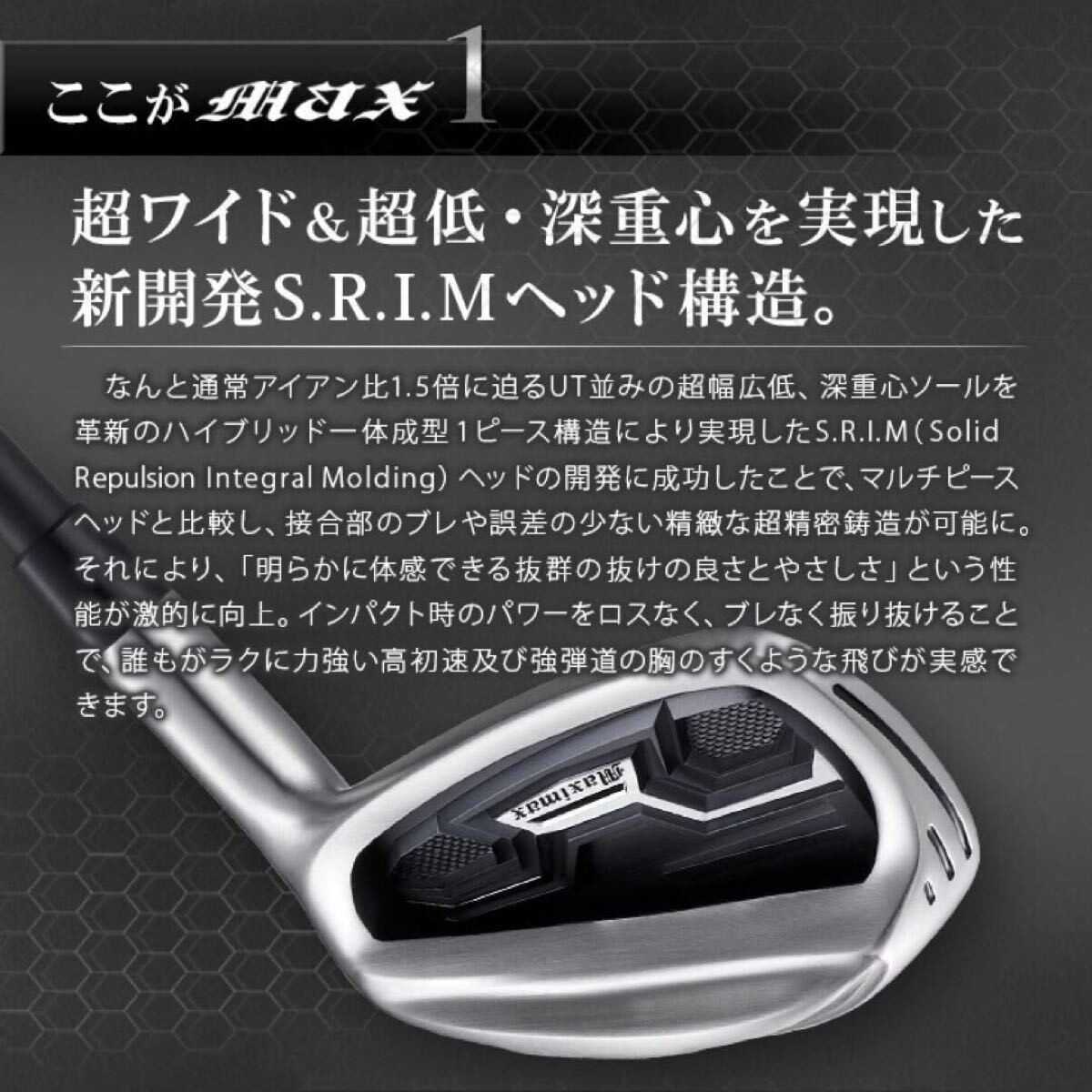 その飛びの秘密は、ドライバー譲りの2.8ミリ肉薄強反発フェースと、新開発S.R.I.Mハイブリッド1ピース構造により、通常アイアン比約1.5倍で45%アップ!