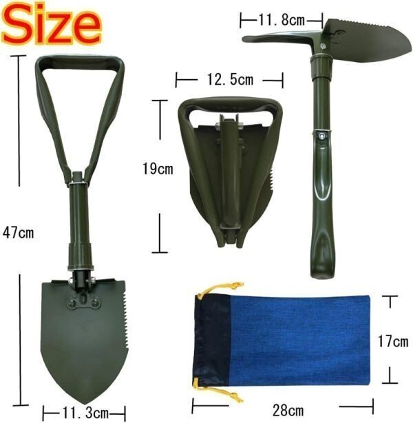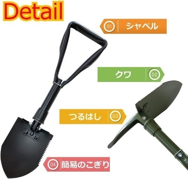 【1台4役の優れモノ】 ミニサイズですが、シャベル、クワ、ツルハシ、簡易ノコギリ、これひとつで4役の多機能シャベル。