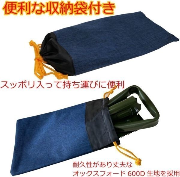 【簡単折り畳み&コンパクト収納】 固定具をクルクルと回し緩めて3つ折りにするだけ、工具要らずの簡単収納で、サッとコンパクトに。 丈夫な収納袋付きだから、キレイに収納もでき、車載や非常時の備えなどにも適しています。