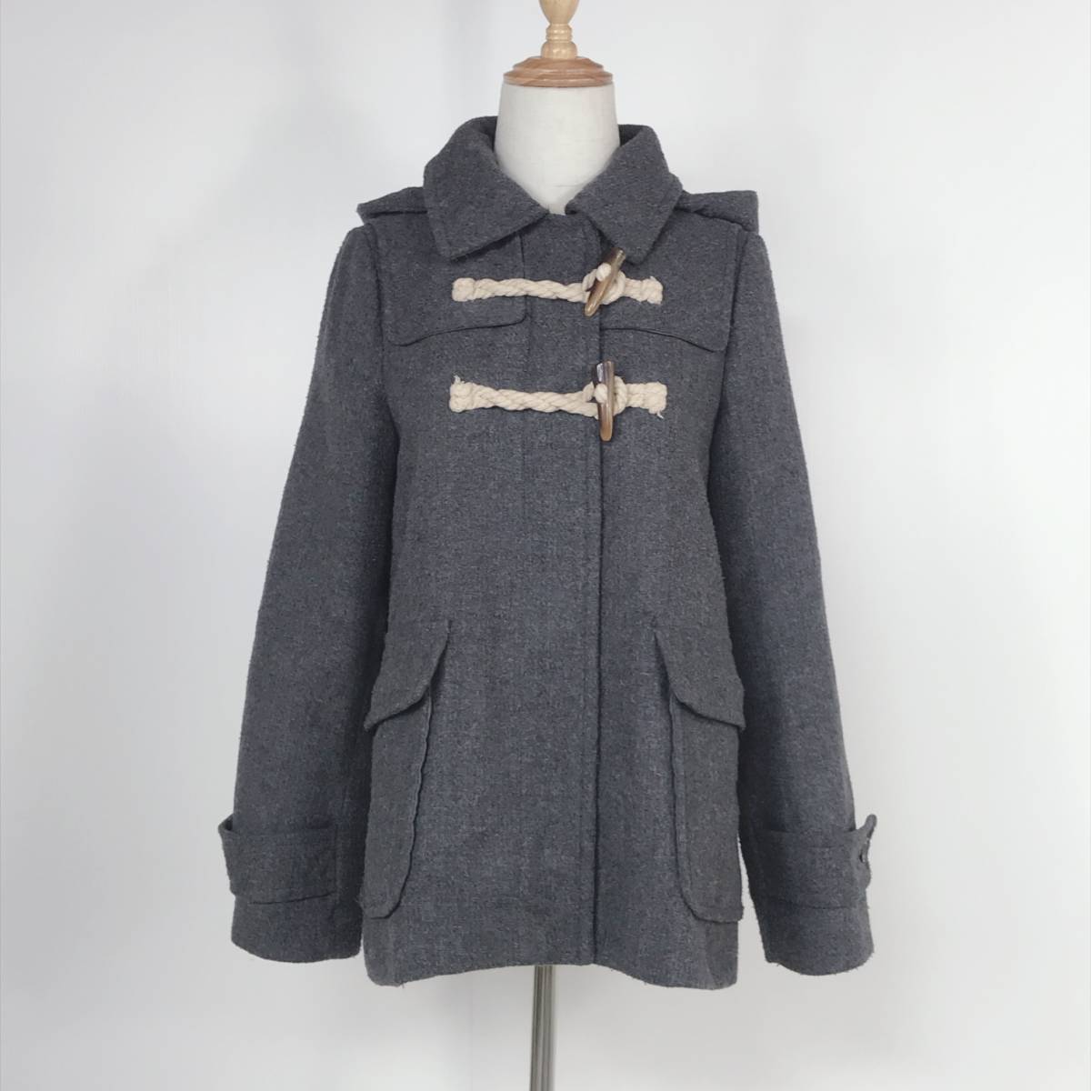 YZ0453 GU レディース アウターコート長袖 厚手 フード取り外し可 サイドポケット Mサイズ 毛素材含 あたたか おしゃれ 秋冬 ミャンマー製