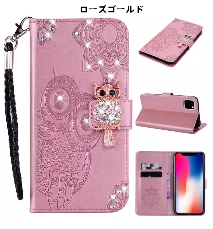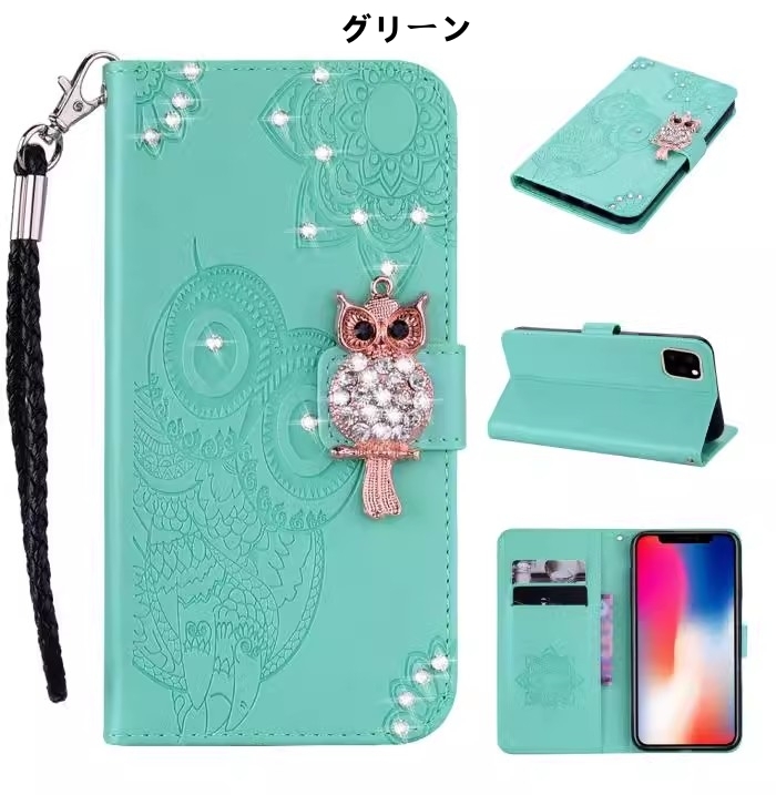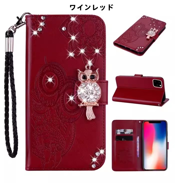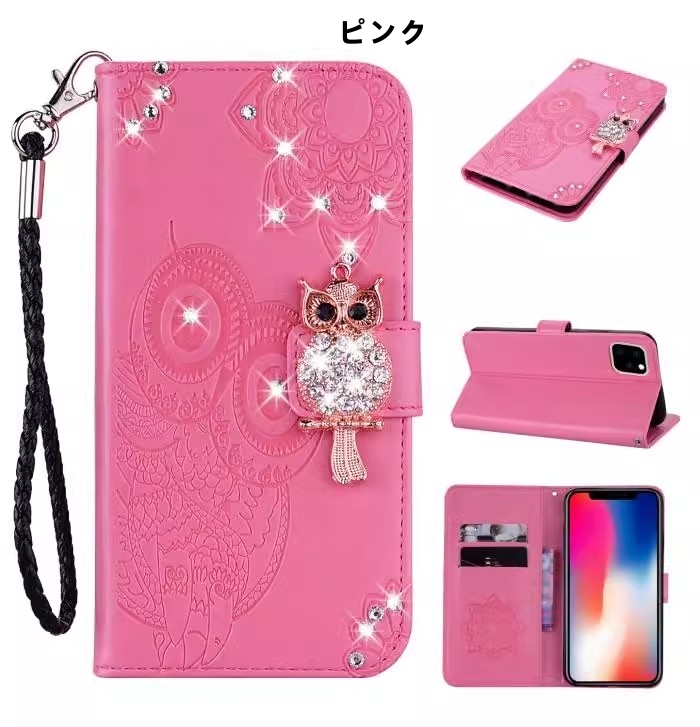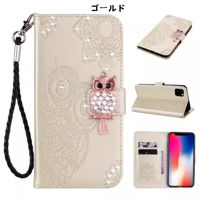 iPhone 16 ケース アイフォン16 ケース スマホケース 保護カバー 6.1インチ 手帳型 ストーン きらきら フクロウ カード収納 ストラップ付き | |||