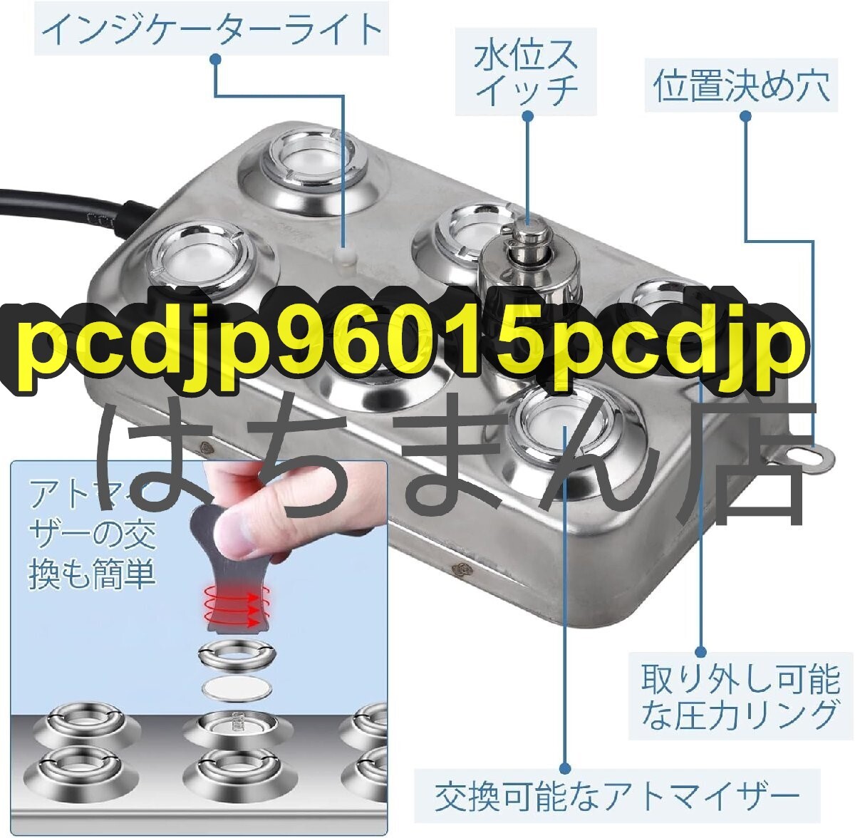 状態:新品未使用 【霧化能力】3L/H; 適応 エリア: 3~4㎡ 【使いやすい】ステンレススチールの水位スイッチ、高温保護と水不足保護機能付きます,水不足と高い水温場合,赤いライトが点灯し、動作を停止します 【安全】304ステンレス鋼シェル、高温抵抗、より耐腐食性,白いエポキシ接着剤は、効果的に水を防ぎます 【耐久性】使用時間を2倍(約7000時間)になります。振動子は、通常3500時間後に老化してしまいました。でも、アトマイザーを交換後、通常使用できます。弊社は予備の振動子6個を提供します 【アプライアンス】盆栽、魚の水槽、岩場、流水、農業、実験室などの場所で広く使用しでいます
