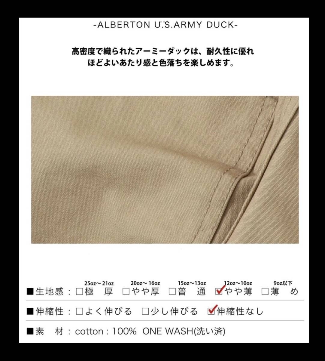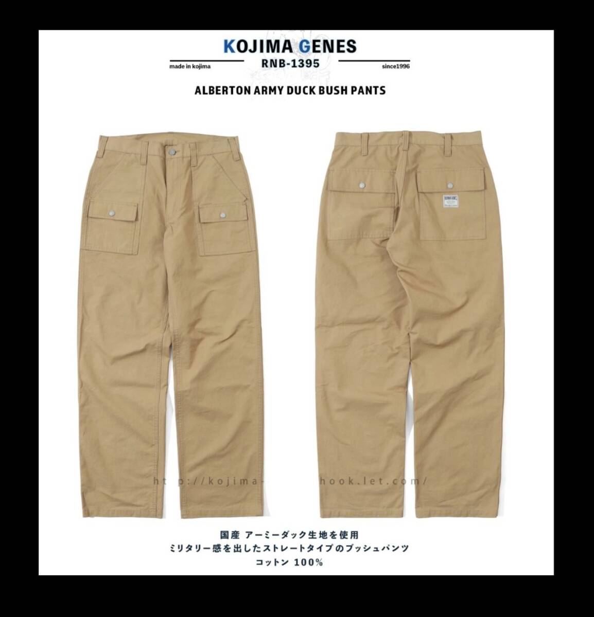★ ライフスタイルマガジンライトニングなどで人気のデニムの生産地岡山県を代表する『児島ジーンズ』からアルバートン アーミー ダック生地を使用した人気のブッシュパンツです。
