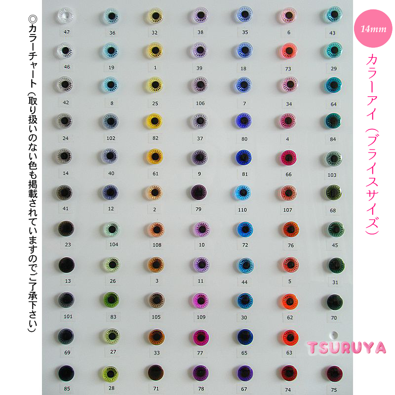 | カラーアイ 14mm/43. blue green ドール用カラコン ブライスにピッタリの14ミリアイチップ♪ 両目の販売です。 足つきです。 多少バリ取り跡(フチにギザギザ)がございます。 ネコポス(送料:300円)での発送となります。 |