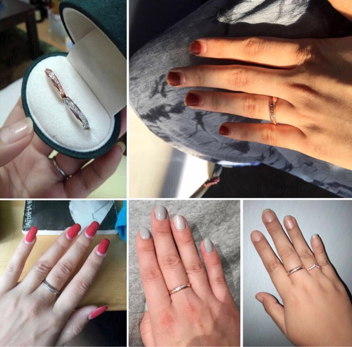 ピンクゴールドに、華やかに輝くAAACZダイアモンドをあしらったシンプルなツイストリングです。