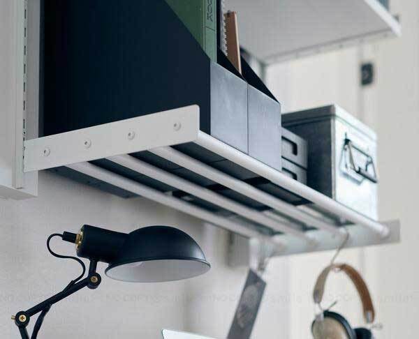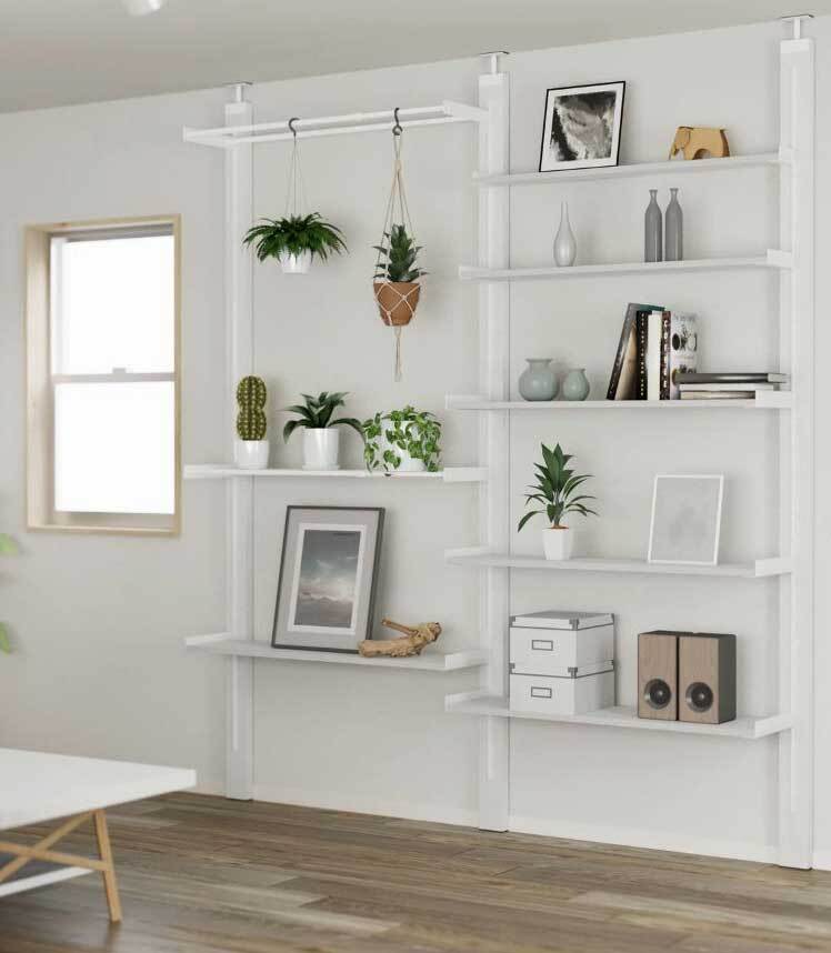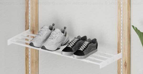 ・シェルフレールは棚柱、ガチャレールとも呼ばれ、引っ掛けるだけでレールに棚を取り付けられるので可動棚として使いやすい。