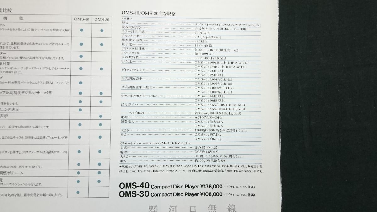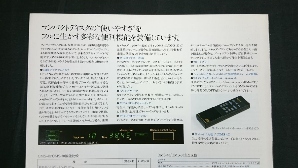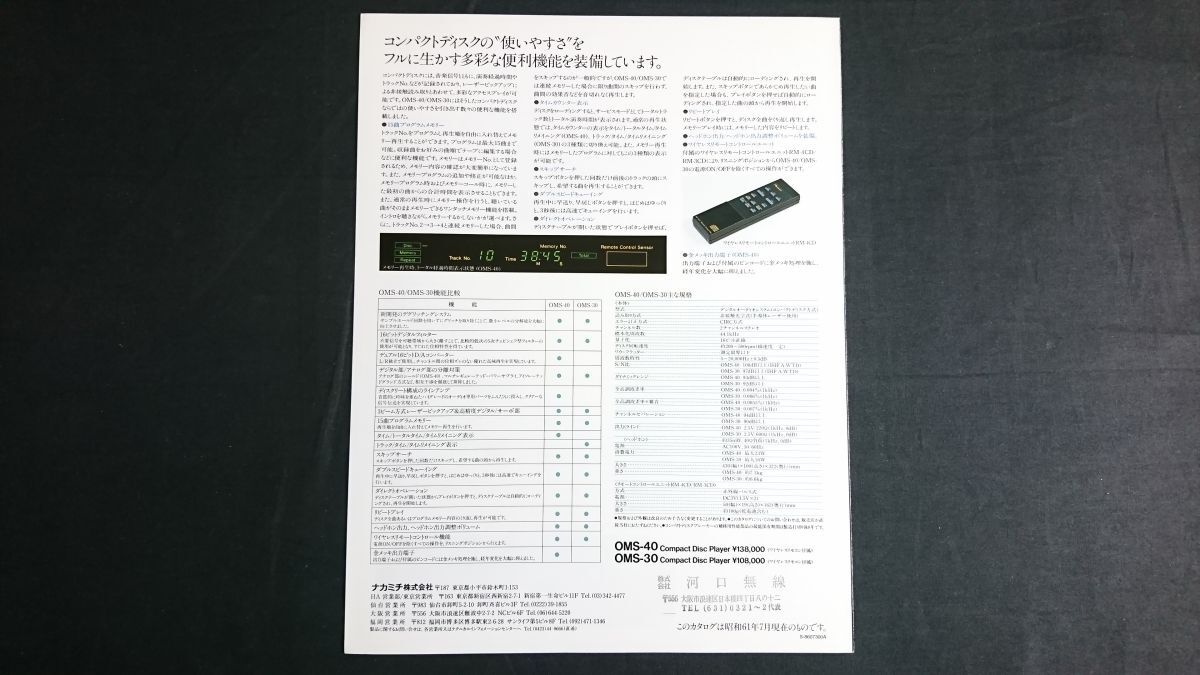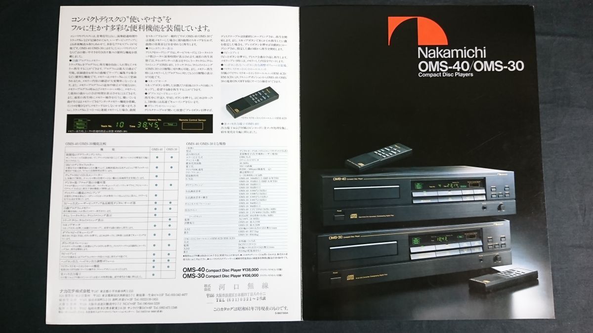 | 【昭和レトロ】『Nakamichi(ナカミチ) Compact Disc Players(コンパクトディスクプレーヤー) OMS-40/OMS-30 カタログ 昭和61年7月』ナカミチ株式会社 | ||