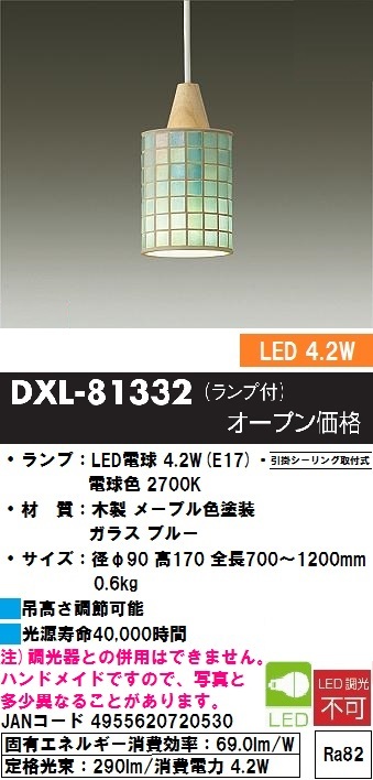 DAIKO DXL-81332 LED小型ペンダント ブルー JAN4955620720530 jyu a