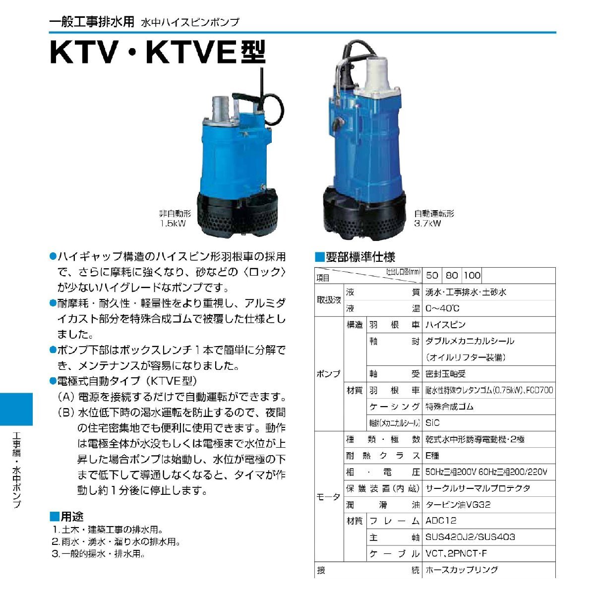 鶴見製作所 ツルミポンプ KTV2-22 50Hz 東日本用 一般工事排水用 水中ハイスピンポンプ KTV型 非自動形 口径50mm 出力2.2kW 水中ポンプ ※こちらの商品は、「代金引換」支払を ご利用いただけません。