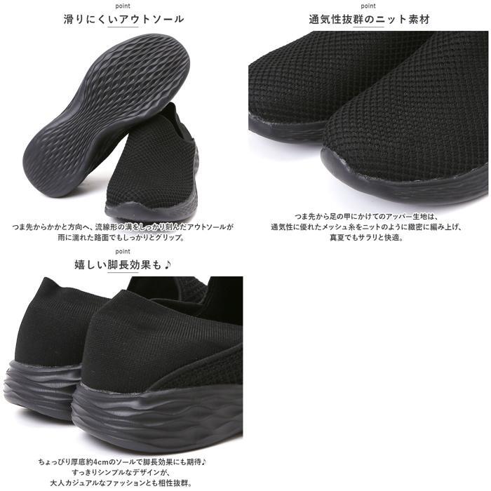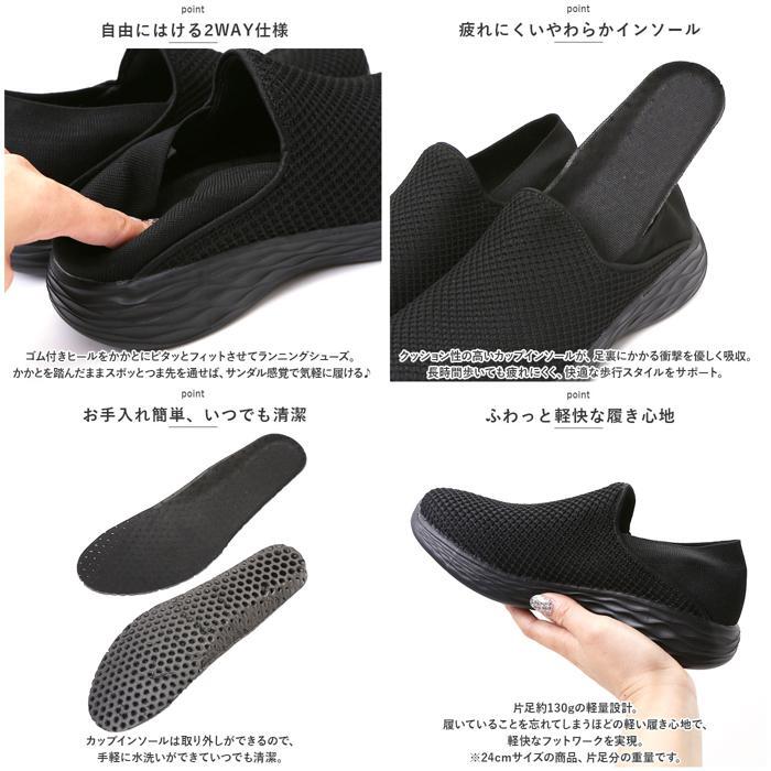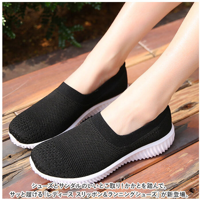 | 商品説明 | ・・シューズとサンダルのいいとこ取り!かかとを踏んで、サッと履ける「レディース スリッポン&ランニングシューズ」が新登場。 ・【通気性抜群のニット素材】 ・つま先から足の甲にかけてのアッパー生地は、通気性に優れたメッシュ糸をニットのように緻密に編み上げ、真夏でもサラリと快適。 ・【ふわっと軽快な履き心地】 ・片足約130gの軽量設計。履いていることを忘れてしまうほどの軽い履き心地で、軽快なフットワークを実現。(※24cmサイズの商品、片足分の重量です。) ・【疲れにくいやわらかインソール】 ・クッション性の高いカップインソールが、足裏にかかる衝撃を優しく吸収。長時間歩いても疲れにくく、快適な歩行スタイルをサポート。 ・【自由にはける2WAY仕様】 ・ゴム付きヒールをかかとにピタッとフィットさせてランニングシューズ。かかとを踏んだままスポッとつま先を通せば、サンダル感覚で気軽に履ける♪ ・【滑りにくいアウトソール】 ・つま先からかかと方向へ、流線形の溝をしっかり刻んだアウトソールが雨に濡れた路面でもしっかりとグリップ。 ・【お手入れ簡単、いつでも清潔】 ・カップインソールは取り外しができるので、手軽に水洗いができていつでも清潔。 ・【嬉しい脚長効果も♪】 ・ちょっぴり厚底約4cmのソールで脚長効果にも期待♪すっきりシンプルなデザインが、大人カジュアルなファッションとも相性抜群。 ・【スポーツや普段使いに最適】 ・ジムでのトレーニングや、ランニングなどのフィットネスにはもちろん、ちょっとそこまでのお出掛けやオフィス用のコンフォートシューズにもオススメ。 |