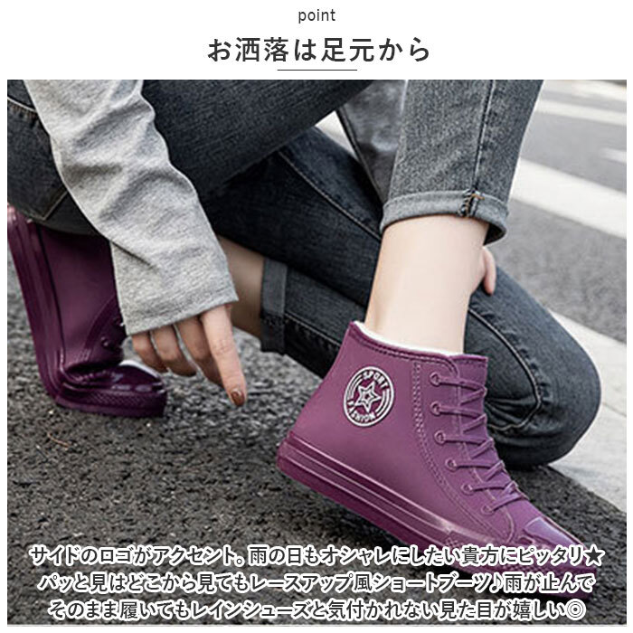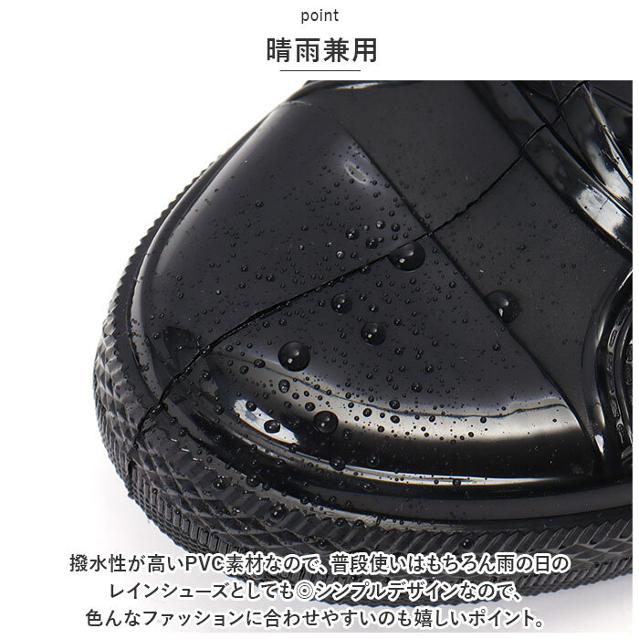 商品説明 | ・・雨の日も晴れの日も履けるレインスニーカー♪ ・【お洒落は足元から】 ・サイドのロゴがアクセント。雨の日もオシャレにしたい貴方にピッタリ★パッと見はどこから見てもレースアップ風ショートブーツ♪ ・雨が止んでそのまま履いてもレインシューズと気付かれない見た目が嬉しい◎ ・【PVC製】 ・水に強いPVC(塩化ビニル樹脂)素材を使用し、アウトソールからアッパーまで、縫い目のない一体形成仕上げ。 ・【晴雨兼用】 ・撥水性が高いPVC素材なので、普段使いはもちろん雨の日のレインシューズとしても◎シンプルデザインなので、色んなファッションに合わせやすいのも嬉しいポイント。 ・【屈曲性◎】 ・柔らか素材で動きやすくストレスのない履き心地。足への負担が軽減。 ・【衛生的】 ・インソールは取り外して洗えるから、いつでも衛生的で安心。 ・【滑りにくい】 ・雨の日でも滑りにくい溝付きのアウトソール。 |