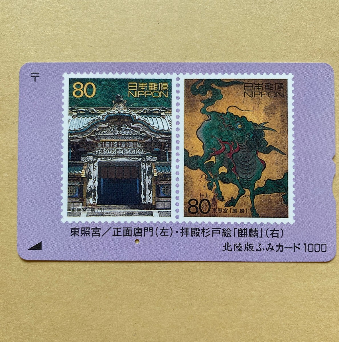 【使用済】 ふみカード北陸版 東照宮/正面唐門(左) ・拝殿杉戸絵「麒麟」(右)