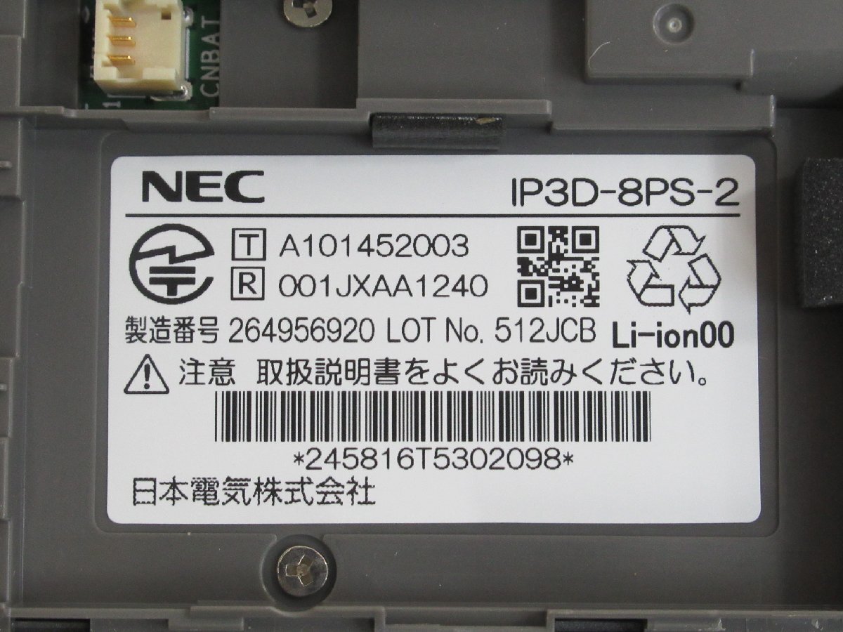 ●内容 ◇ IP3D-8PS-2 ×1 NEC マルチゾーンデジタルコードレス電話機 ◇ IP1D-CS-D ×1 NEC Aspire 接続装置 SERIES-4.0-G ●商品の状態ランク 【 コードレス [ウ] アンテナ [キ] 】 [ア] 新品 [イ] 未使用品 [ウ] 美品 [エ] キレイ (ほぼ美品) [オ] キレイメ (欠点がわずか) [カ] 普通 [キ] 欠点がやや気になる [ク] 欠点がかなり気になる [ケ] 使用感最大 [コ] ジャンク ●補足説明 本商品は中古品となります。 写真では分かりにくいキズ・汚れ・欠けなどの使用感があります。 予めご理解・ご了承頂きますようお願いいたします。 アンテナに傷・日焼けがございます。 壁掛パーツに日焼けによるシール跡がございます。 動作確認済です。 電池は消耗品の為、現状でのお渡しになります。 電池残容量は保証の対象外になります。 ※こちらの商品は保管中に経年で日焼けしやすい商品となります。予めご了承ください。
