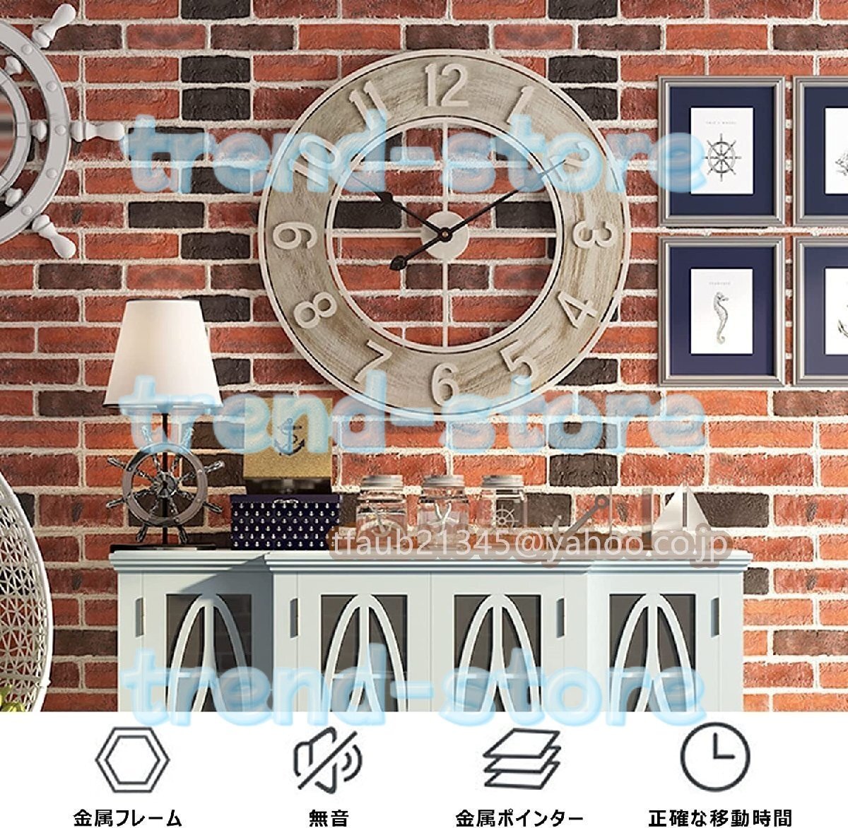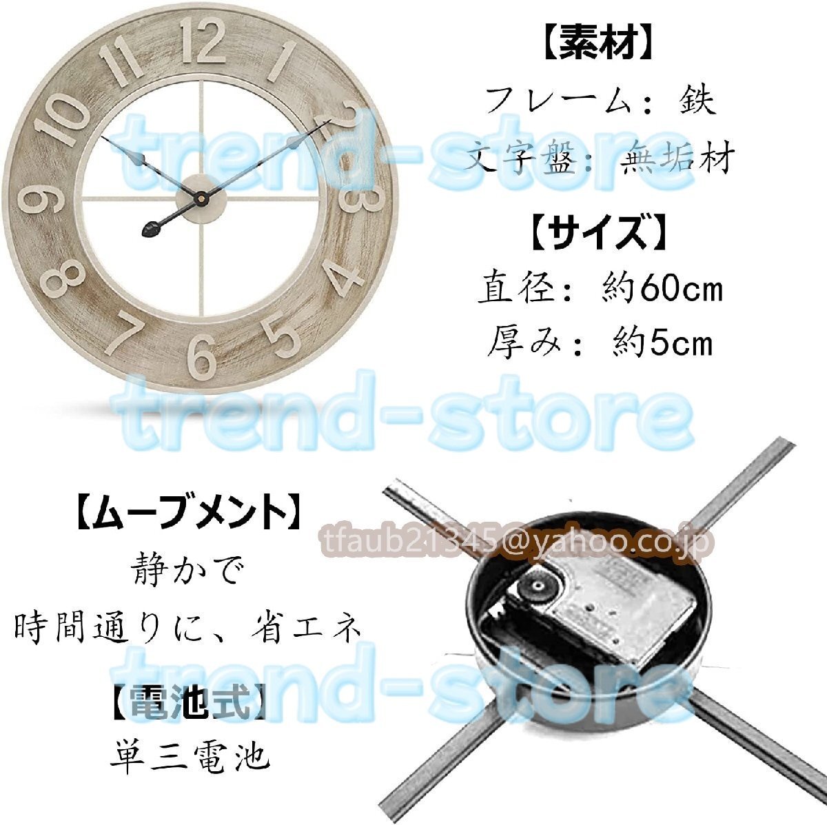 掛け時計 60cm 工業スタイル おしゃれ 壁掛け時計 レトロ金属 円形 連続秒針 アンティーク ウォールクロック インテリア 時計 北欧