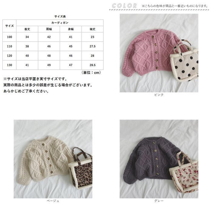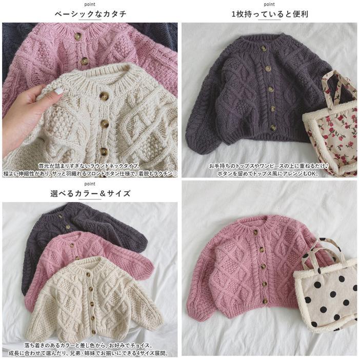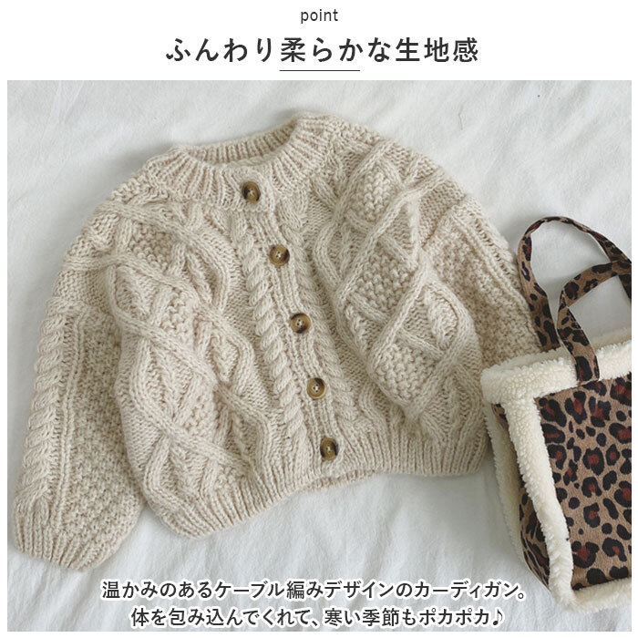 商品説明 | ・・着回し力ばっちり。秋冬に大活躍のキッズ用カーディガンが新登場。 ・【ふんわり柔らかな生地感】 ・温かみのあるケーブル編みデザインのカーディガン。体を包み込んでくれて、寒い季節もポカポカ♪ ・【ベーシックなカタチ】 ・首元が詰まりすぎないラウンドネックタイプ。程よい伸縮性があり、サッと羽織れるフロントボタン仕様で、着脱もラクチン◎ ・【1枚持っていると便利】 ・お手持ちのトップスやワンピースの上に重ねるだけ♪ボタンを留めてトップス風にアレンジもOK。 ・【選べるカラー&サイズ】 ・落ち着きのあるカラーと差し色から、お好みでチョイス。成長に合わせて選んだり、兄弟・姉妹でお揃いにできる4サイズ展開。 |