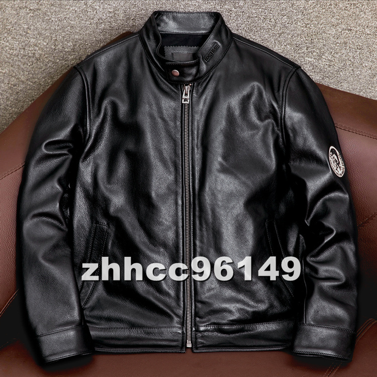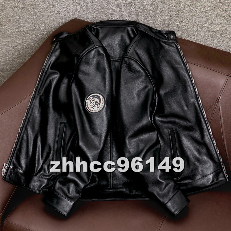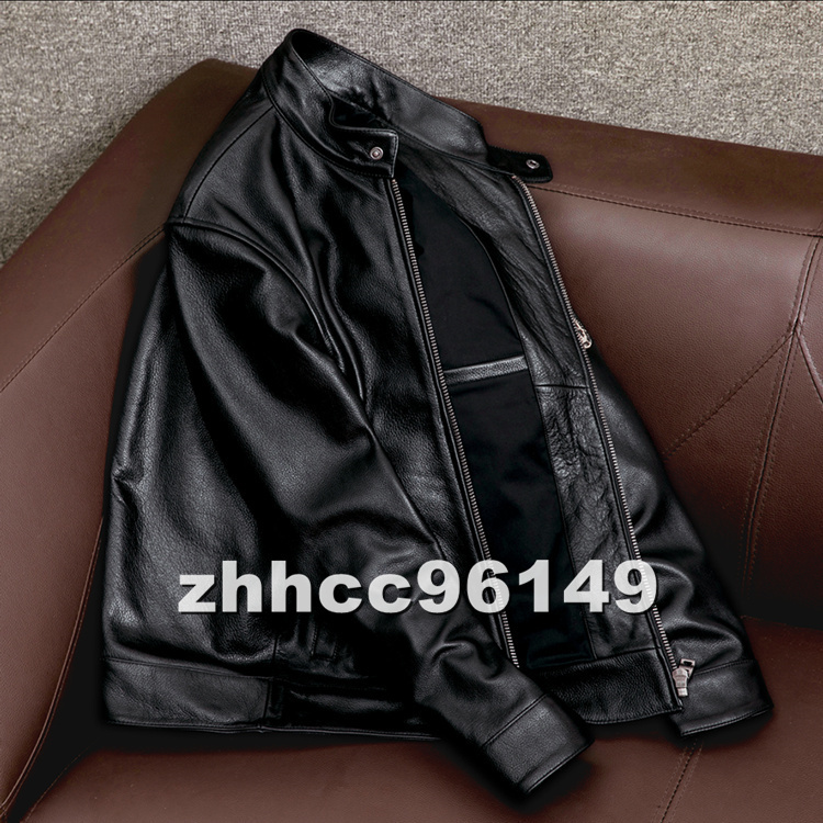 ■稀少品■メンズ 革ジャン スタンドカラー レザージャケット 牛革 本革 ライダース ハーレー バイクウエア ブルゾン オートバイ S-5XL