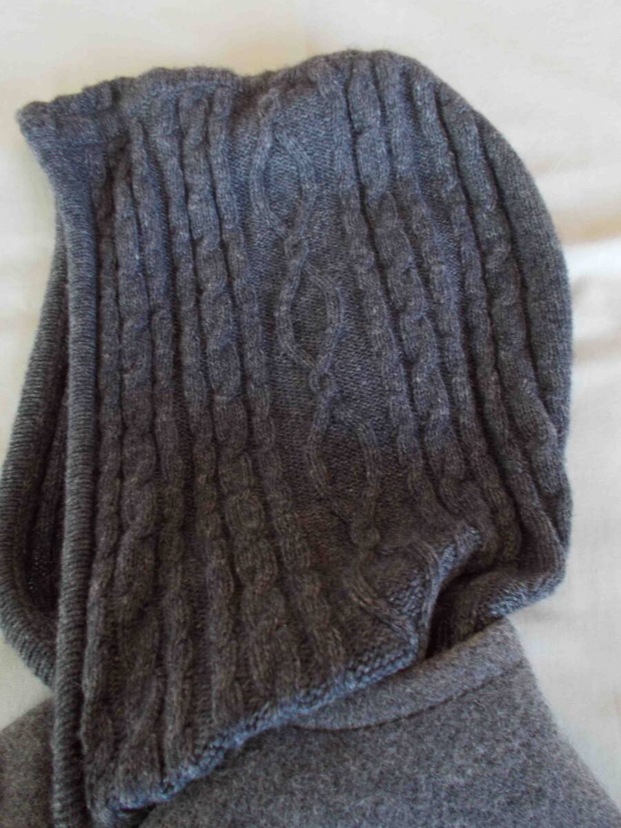 フードを外して、マフラーの色で雰囲気を変えられます。