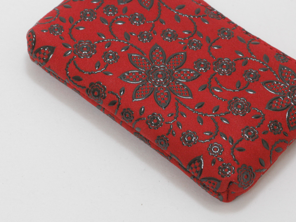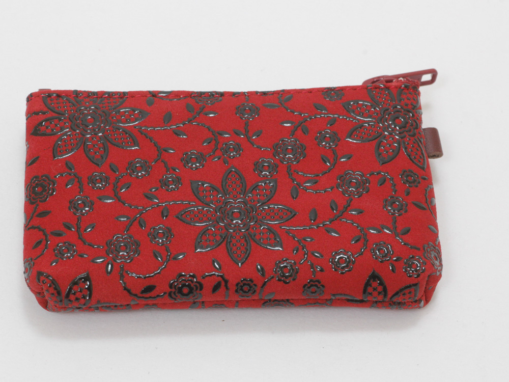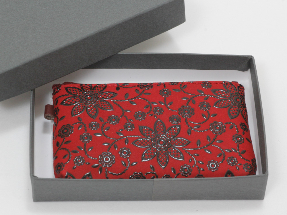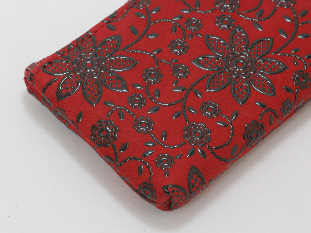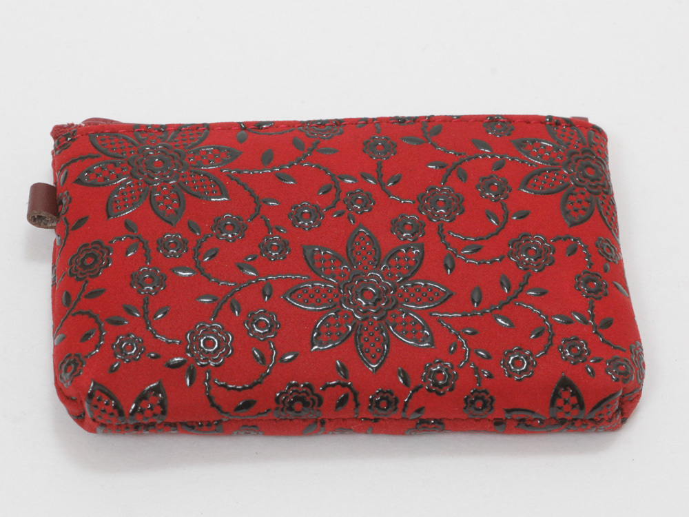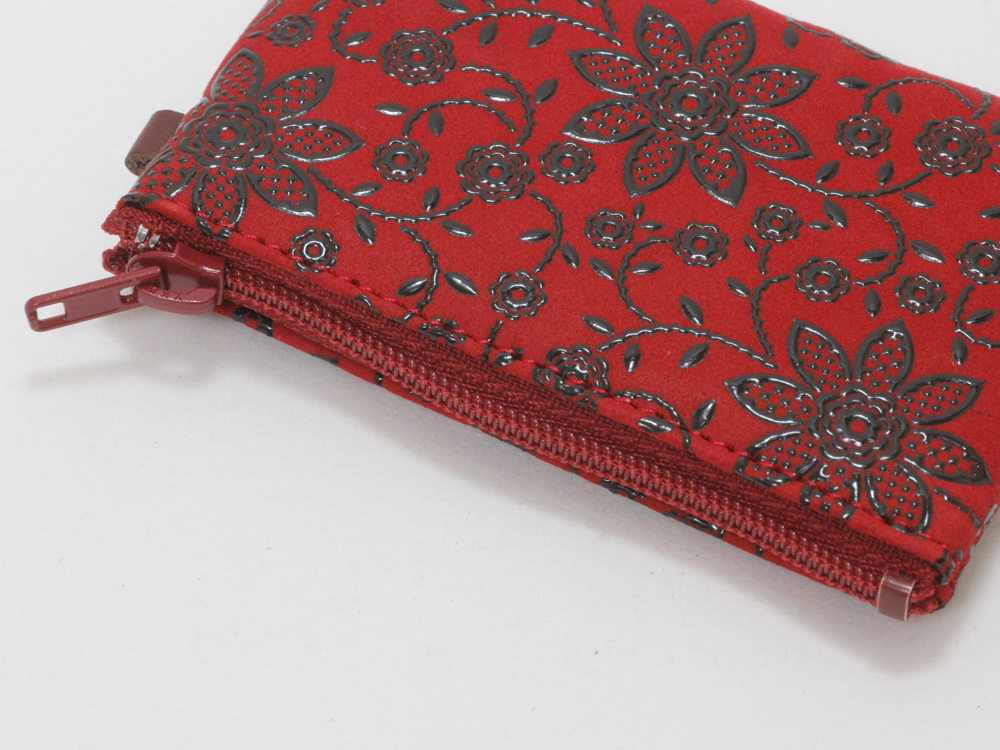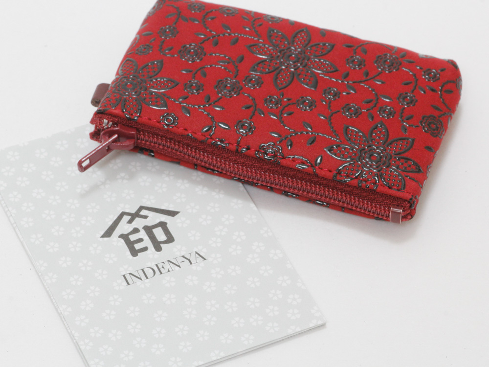 ☆新品・未使用☆ 甲州印伝 印傳屋 小銭入09 No.1009 クレマチス柄 赤×黒