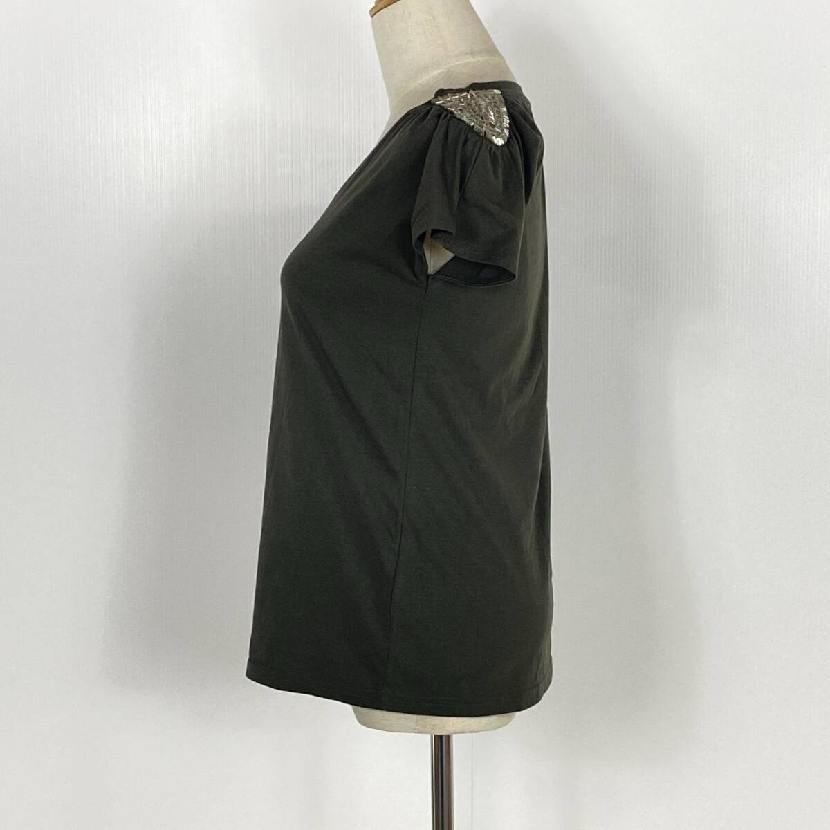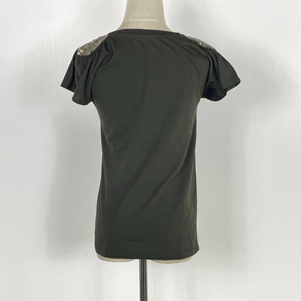 YZ1260 美品 JAYRO レディース ビジュー付 半袖 Tシャツ カットソー Mサイズ Vネック カジュアル 万能 シンプル ゴージャス USED 古着