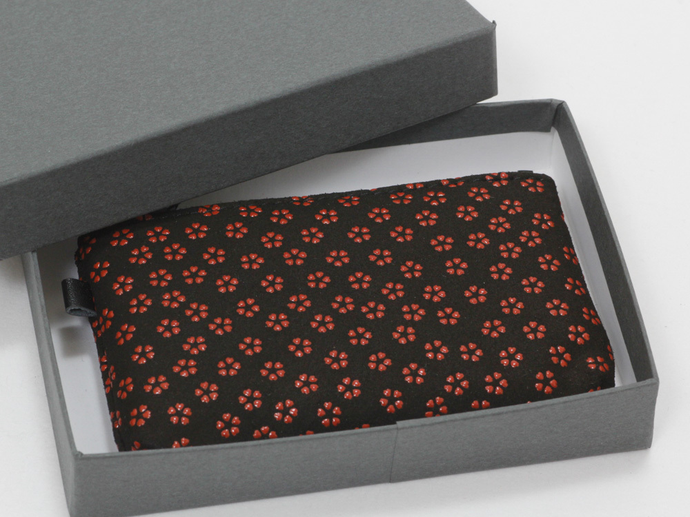 ☆新品・未使用☆ 甲州印伝 印傳屋 小銭入09 No.1009 小桜柄 黒×赤