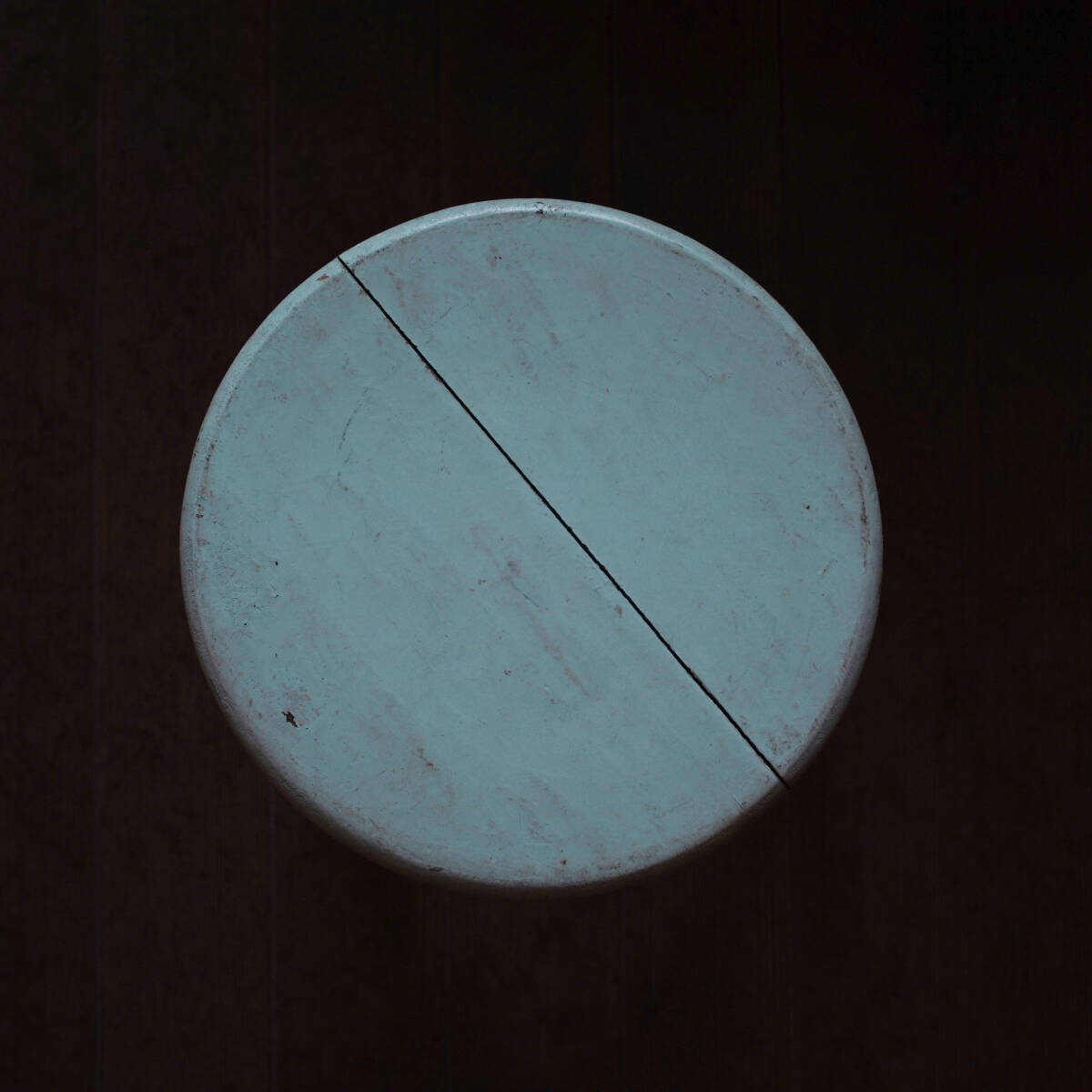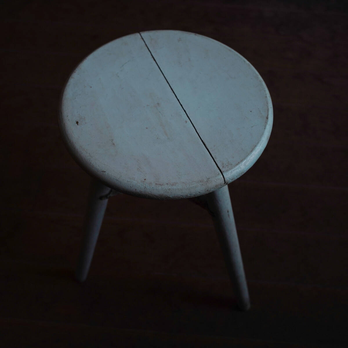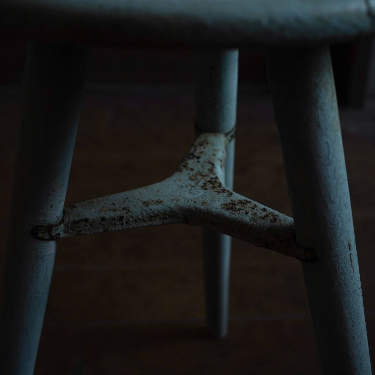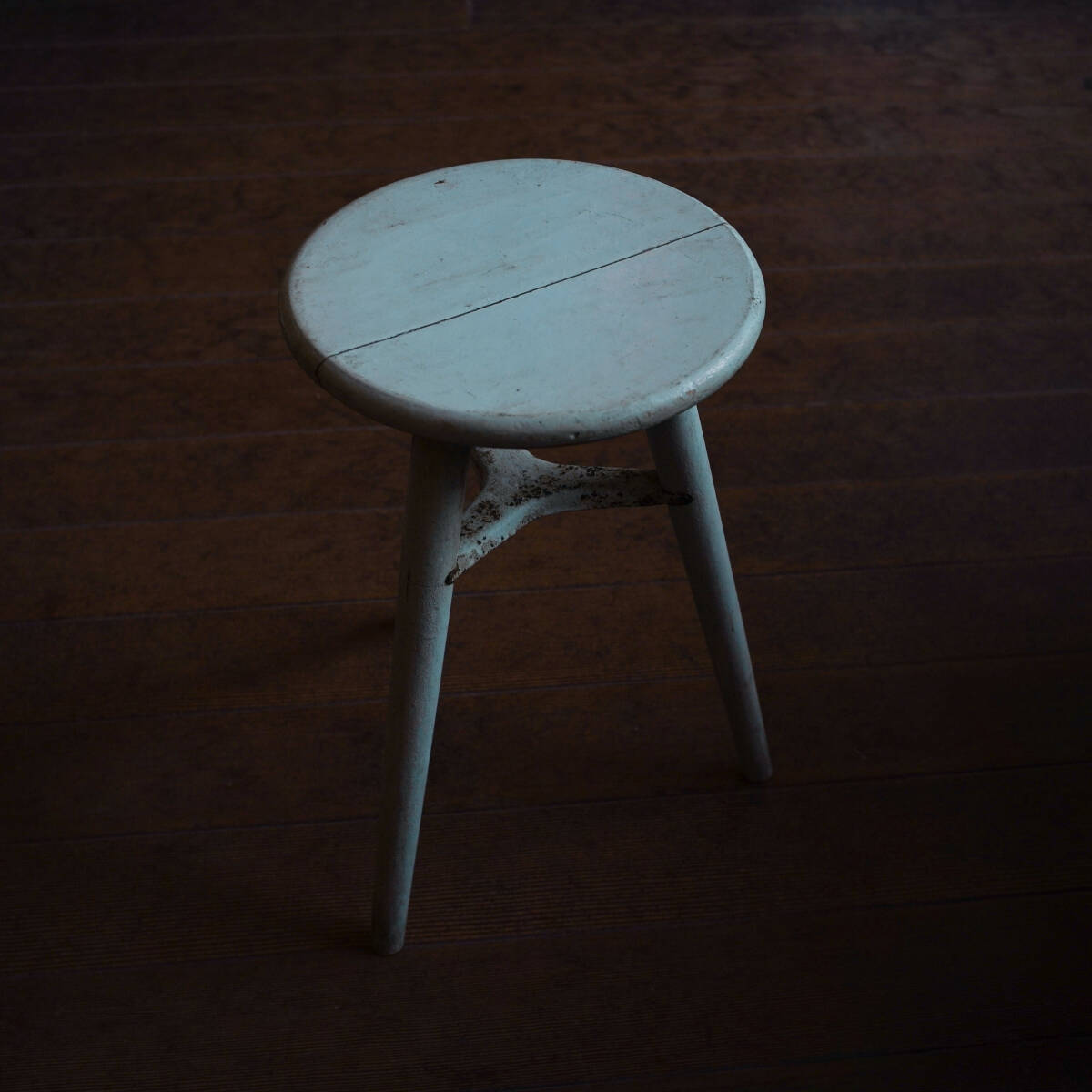 古いスツールとしては人気のあるモデルですが、経年変化によって柔らかな表情となった水色ペンキが味わい深く好ましいです。