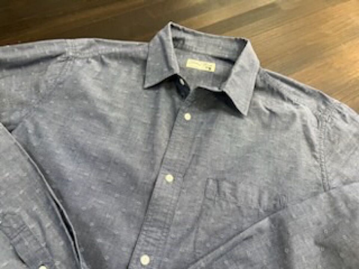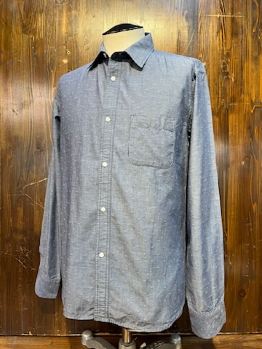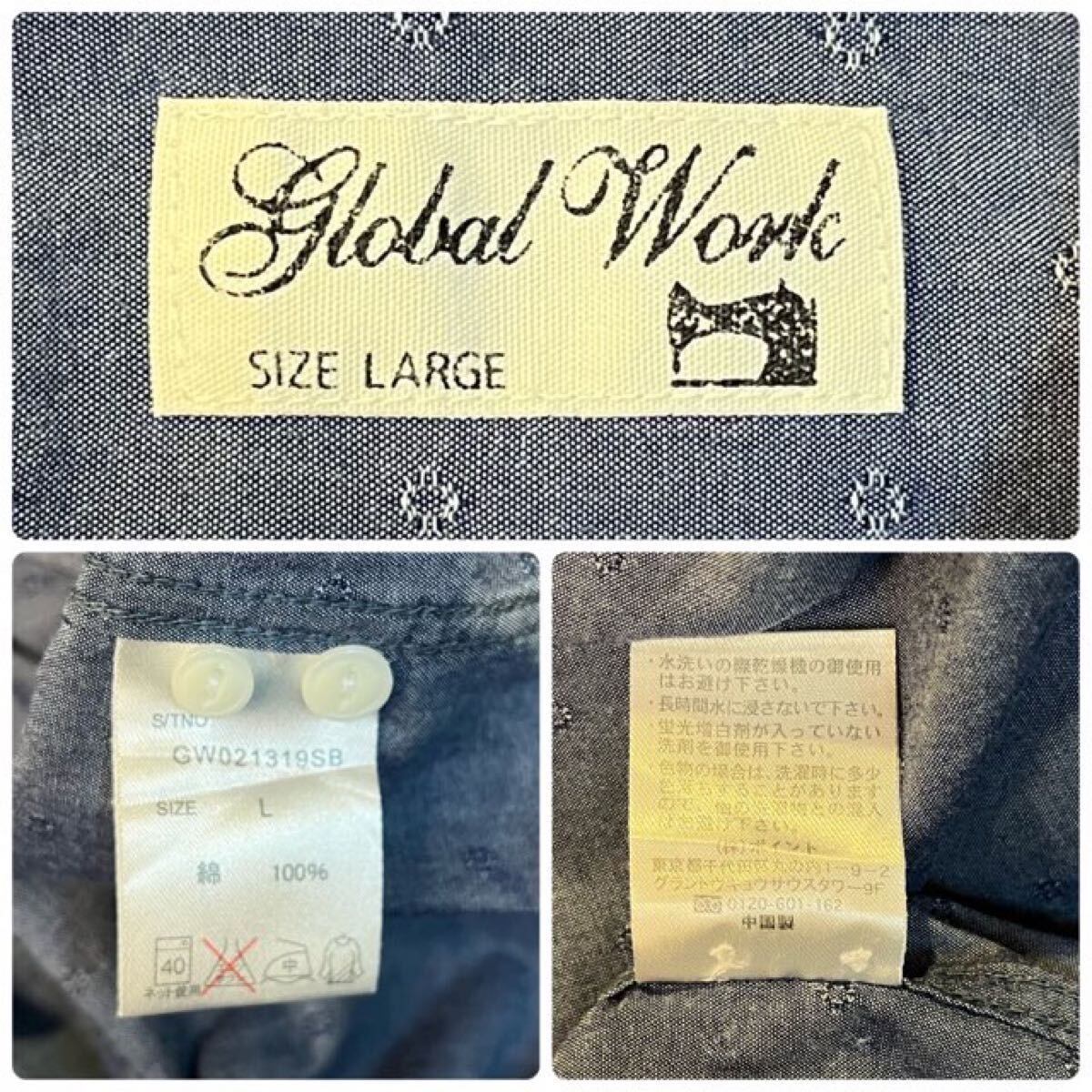 L405 メンズ シャツ GLOBAL WORK グローバルワーク 長袖 ブルー ドット 柄 ボタンダウン カジュアル / L 全国一律レターパック発送
