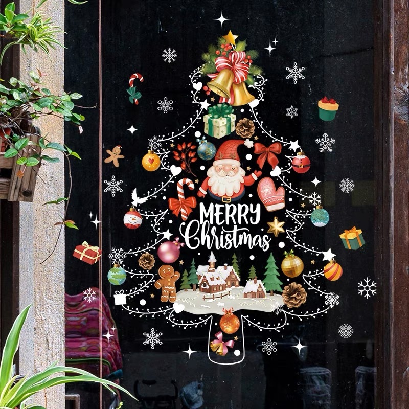 ウォールステッカー YSD056 メリークリスマス ツリー サンタクロース プレゼント 雪花 DIY壁紙インテリア窓シート剥がせる 送料無料