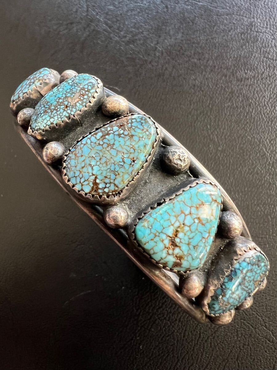 NAVAJO【OLD PAWN】1960~70's GEM ネバダブルー ターコイズ バングル ナバホ インディアンジュエリー ホピ