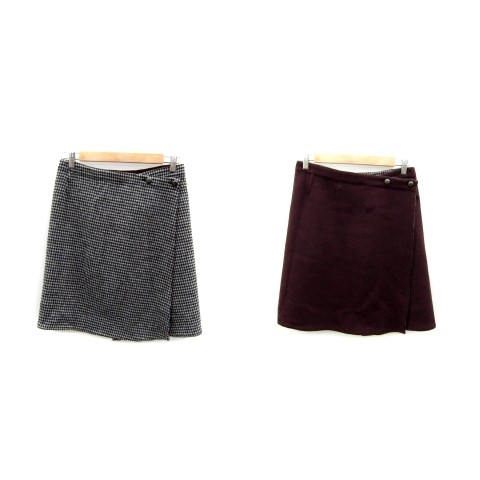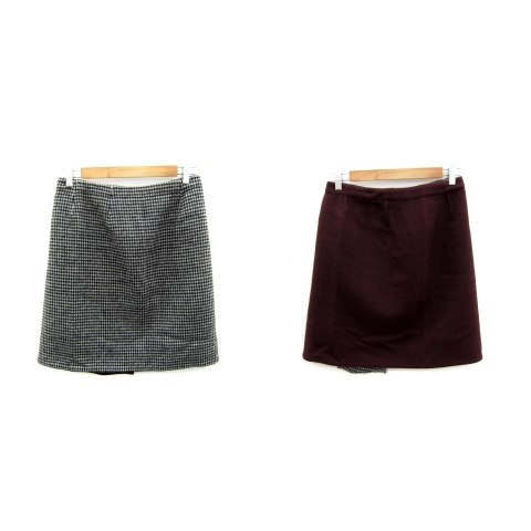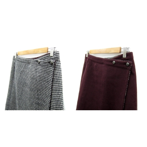 イエナ IENA ラップスカート 台形スカート リバーシブル 千鳥格子柄 無地 40 L ボルドー 白 黒 /SY12 レディース