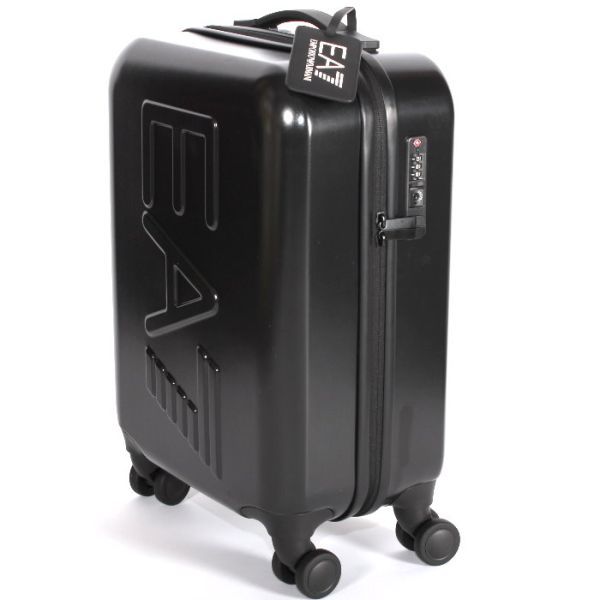 EMPORIO ARMANI EA7 エンポリオアルマーニ 機内持ち込み可 スーツケース 4輪 キャリーバッグ ブラック 249595 CC905 00020 トロリーケース ABS製 オーバーサイズロゴ ビジネス 旅行 メンズ レディース ユニセックス【新品・未使用・正規品】売れ筋