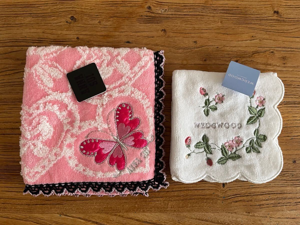 ★ 値下げ ★ 新品 ★【 ANA SUI アナスイ ウェッジウッド 】★ 2枚組 ★ 蝶々 お花 ★ タオルハンカチ ハンカチ