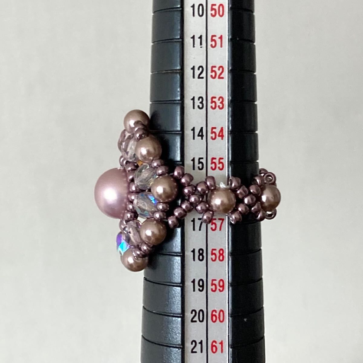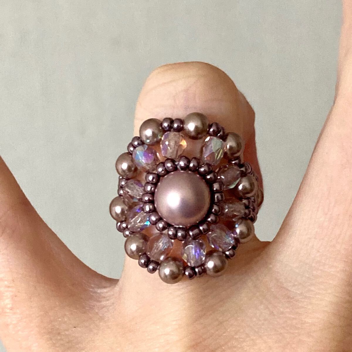 ビーズ リング  指輪 ハンドメイド パールとチェコビーズの丸型リング 薄パープルピンク 15-17号 です。