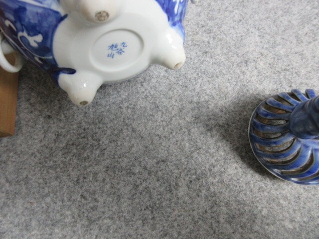 九谷焼 染付 風景図 獅子 香炉 旭山造 共箱です。 商品画像が実際の商品そのものですので、ご入札前にしっかりとご確認いただきますようお願いいたします。 |