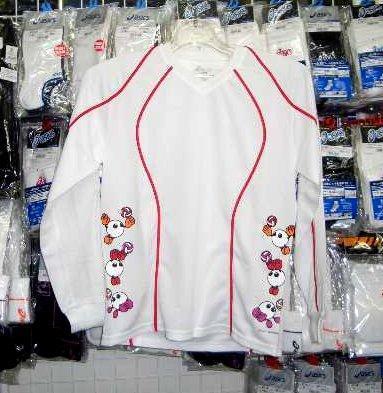 バボちゃん Tシャツ アシックス XW6127 asics 限定販売長袖 白ホワイト レディース Lサイズ asics 新品 レトロ 即決/