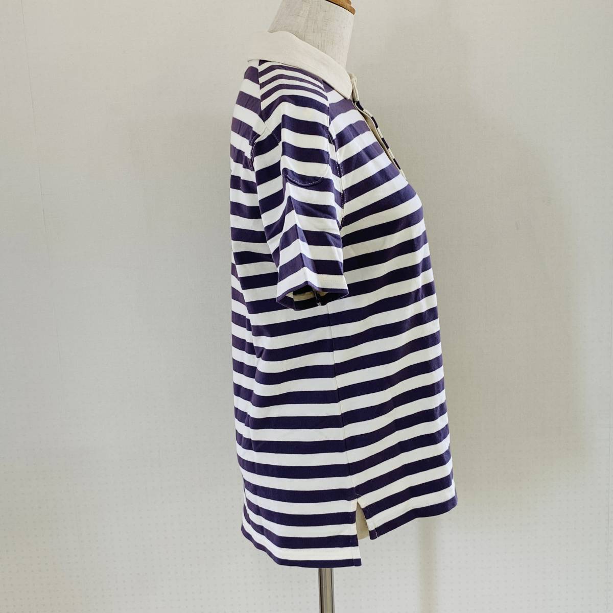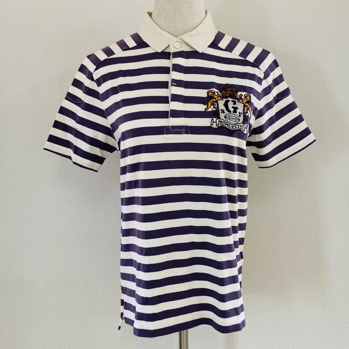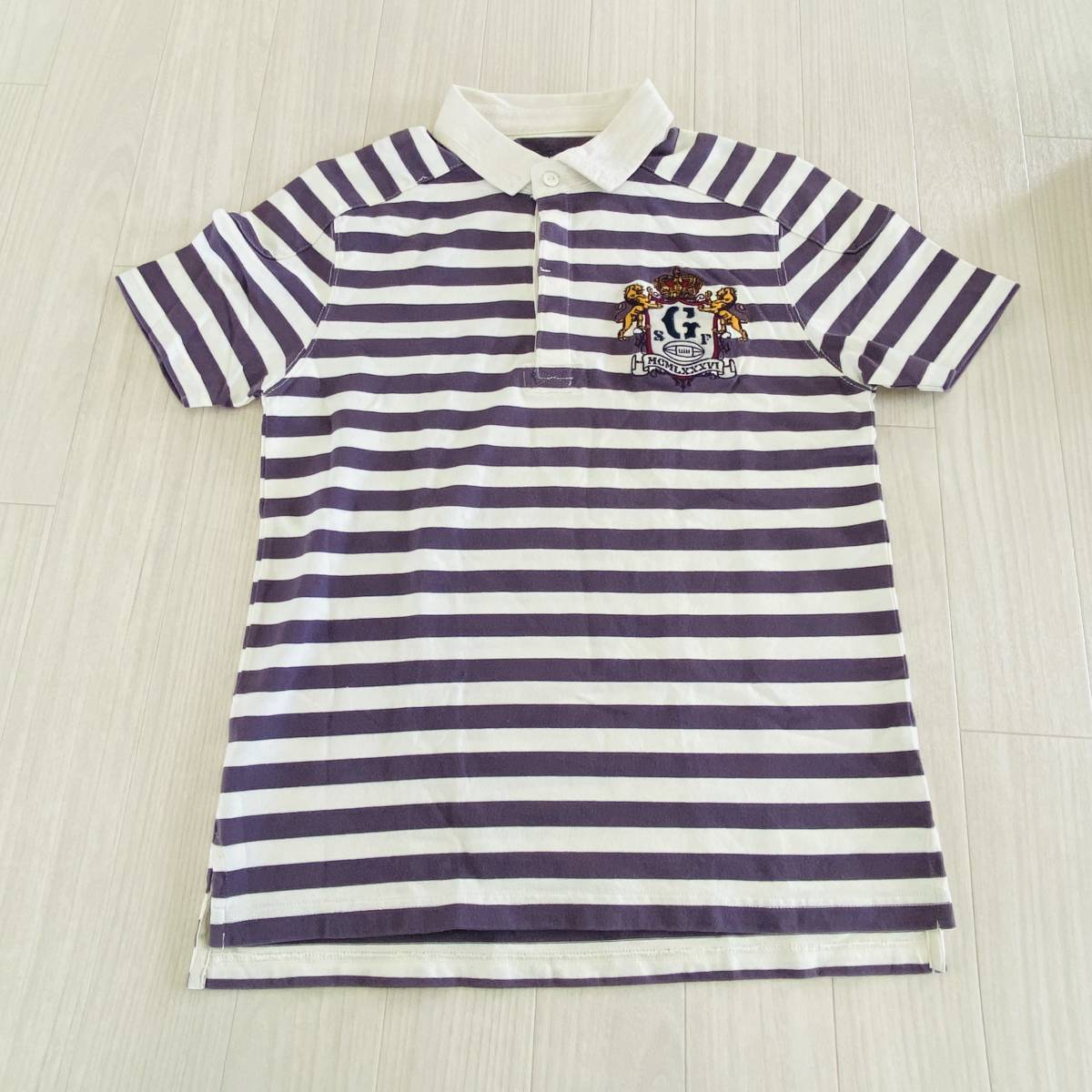 YAS0030 タグ付き 未使用 GAP ギャップ レディース ポロシャツ 半袖 カジュアル XS 紫 ボーダー 綿100% 夏 スポーティチックスタイル 紫白