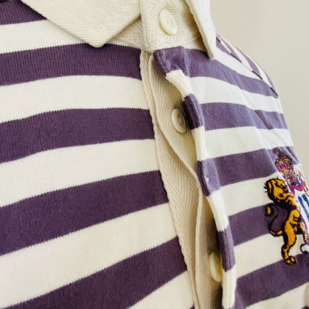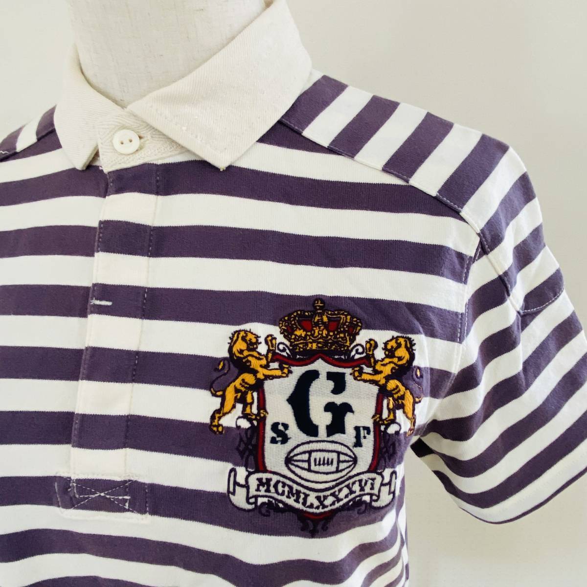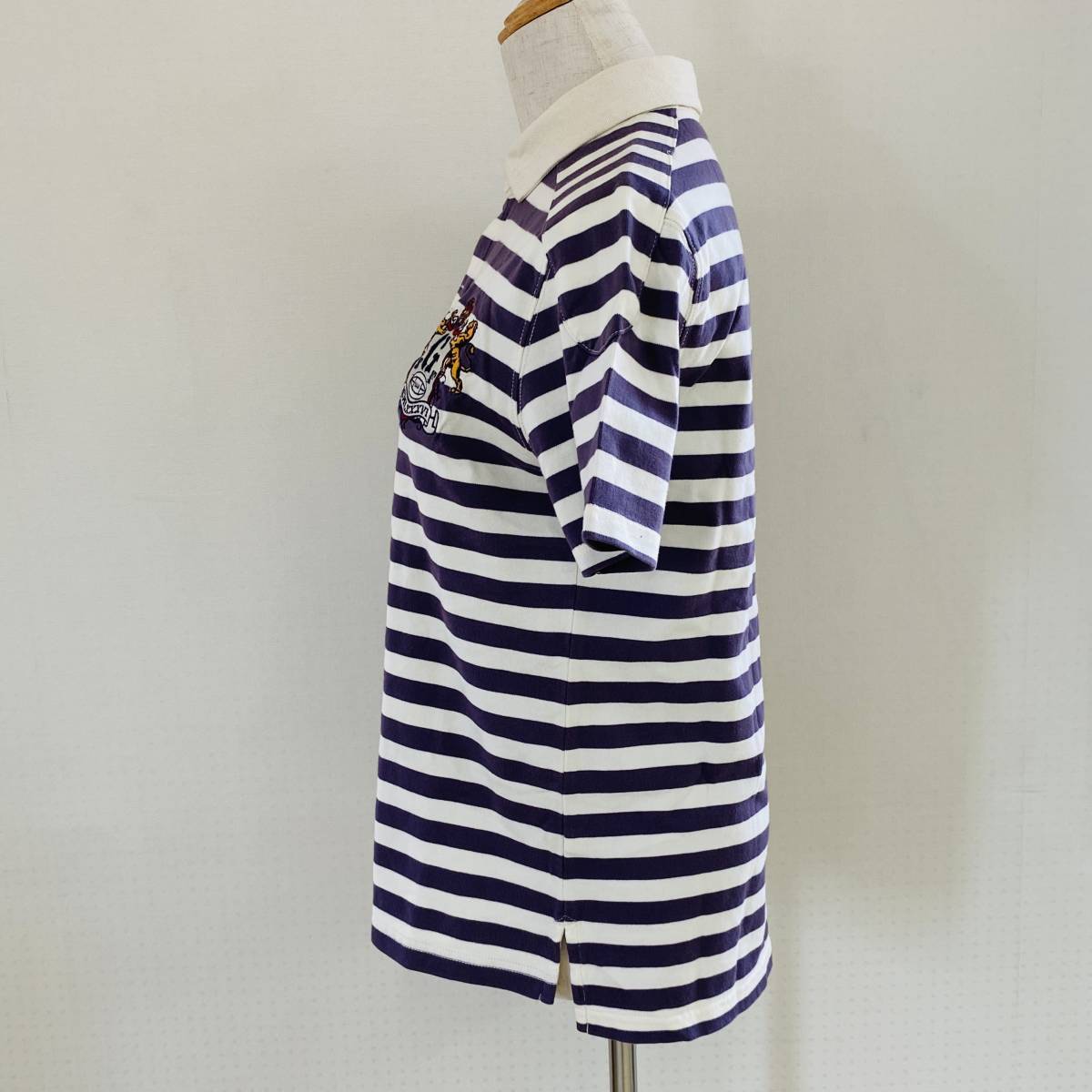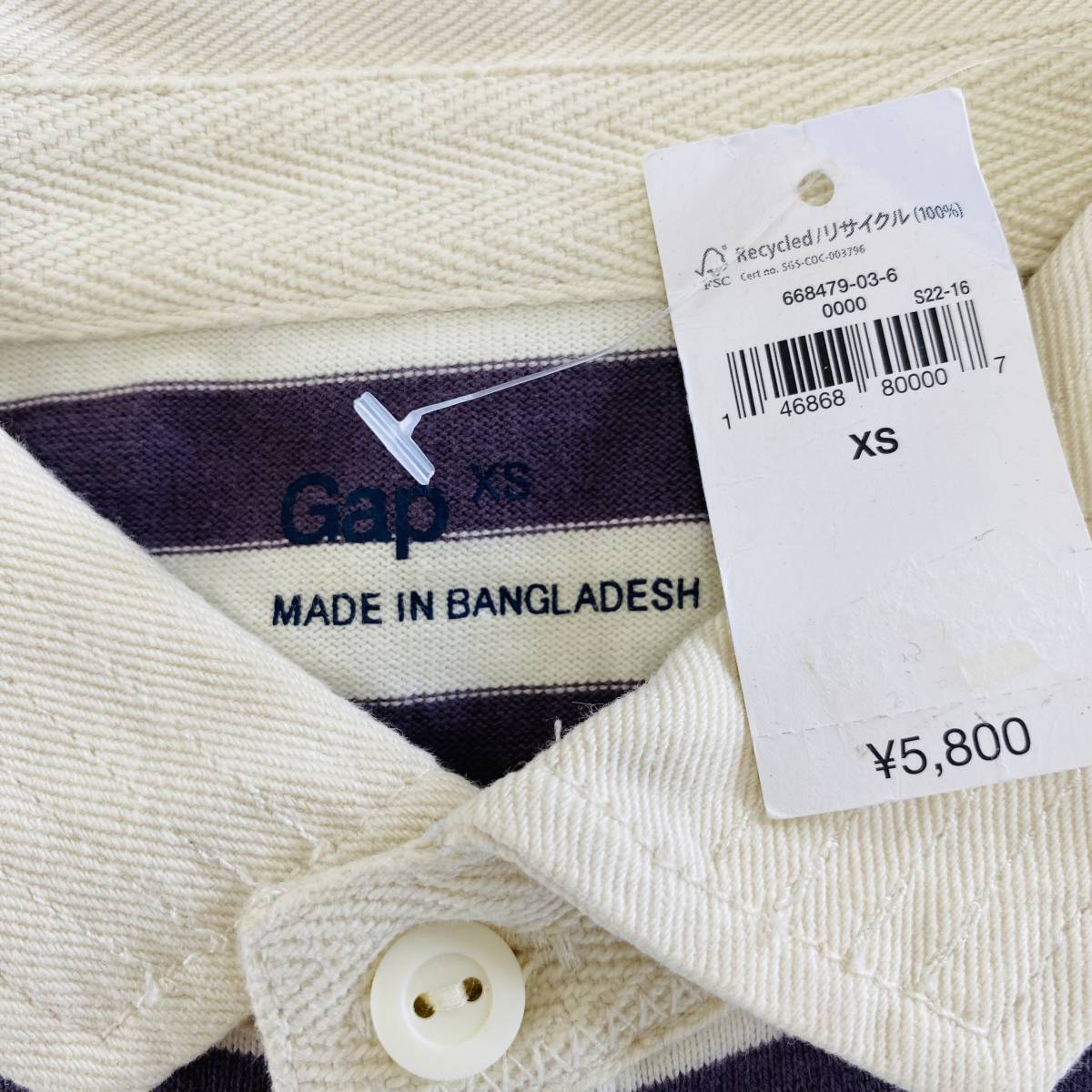 YAS0030 タグ付き 未使用 GAP ギャップ レディース ポロシャツ 半袖 カジュアル XS 紫 ボーダー 綿100% 夏 スポーティチックスタイル 紫白