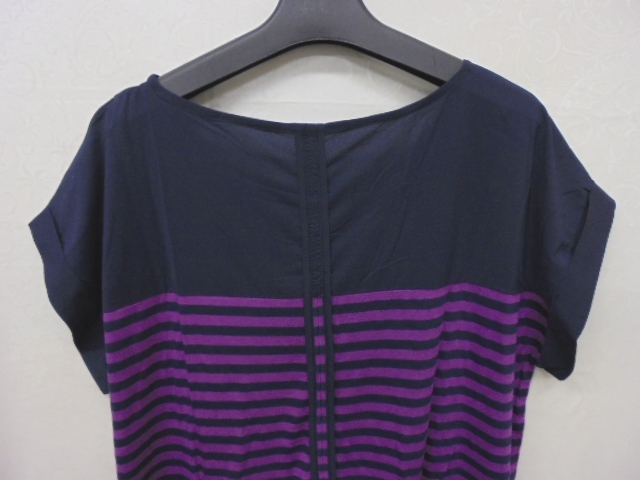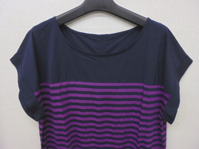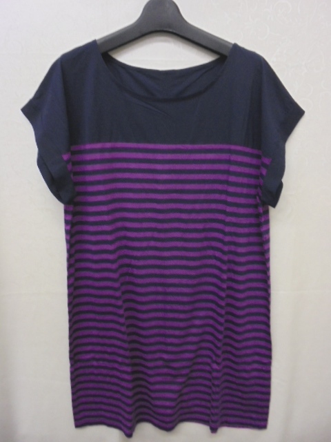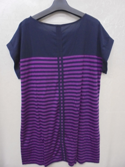 【KCM】sima-4-383-40/M★未使用品★レディース バンドスリーブ ボーダー切替 チュニック カットソー 40/M ネイビー×パープル