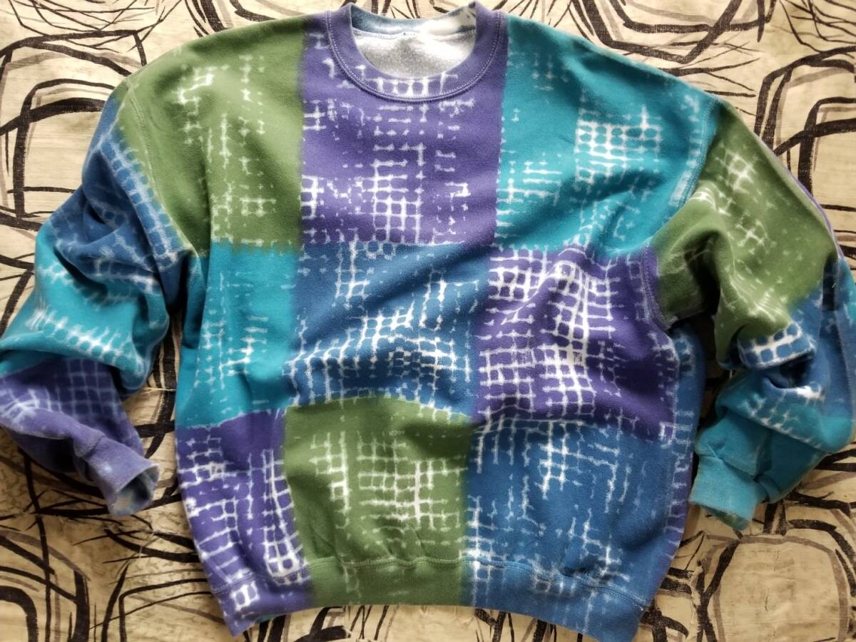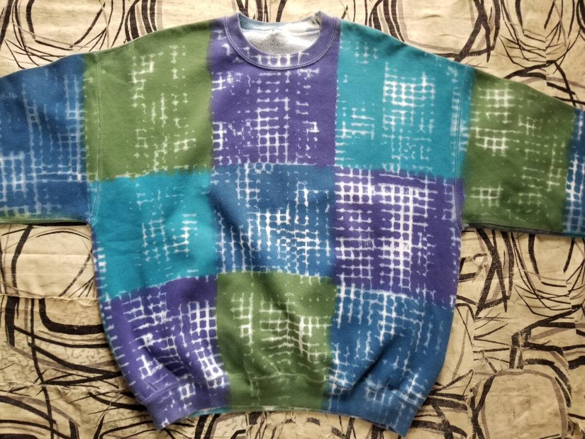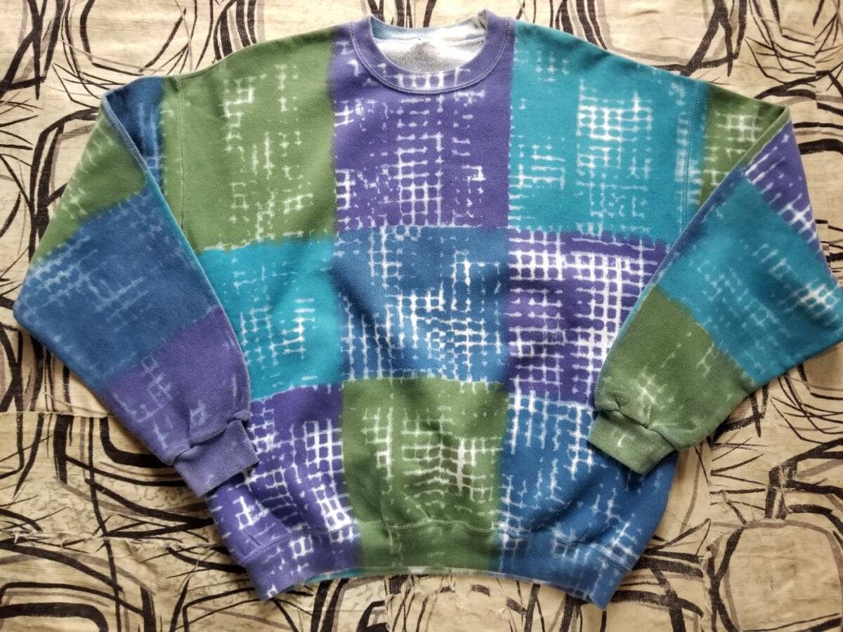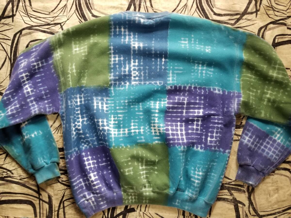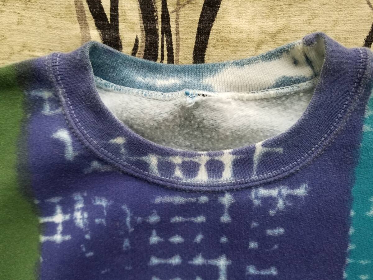 レア◎希少 90s 80s ビンテージ オリジナル 総柄 カスリ 柄 後染め マルチカラー プリント スウェット シャツ トレーナー 検索 USA製 Hanes