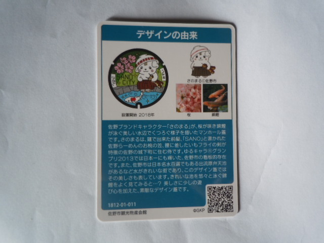 マンホールカード 栃木県佐野市 011 非売品です。 頂き物のため微小の傷、汚れ等有り得ますので神経質な方、新規の方の入札はご遠慮ください。 ノークレーム、ノーリターンでお願いします。 他にも出品しています。