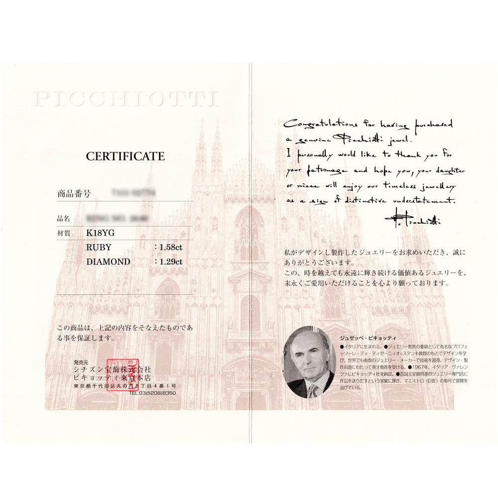 商品名 | 保証書付 ピキョッティ ルビー 1.58ct ダイヤモンド 1.29ct K18 リング | ||