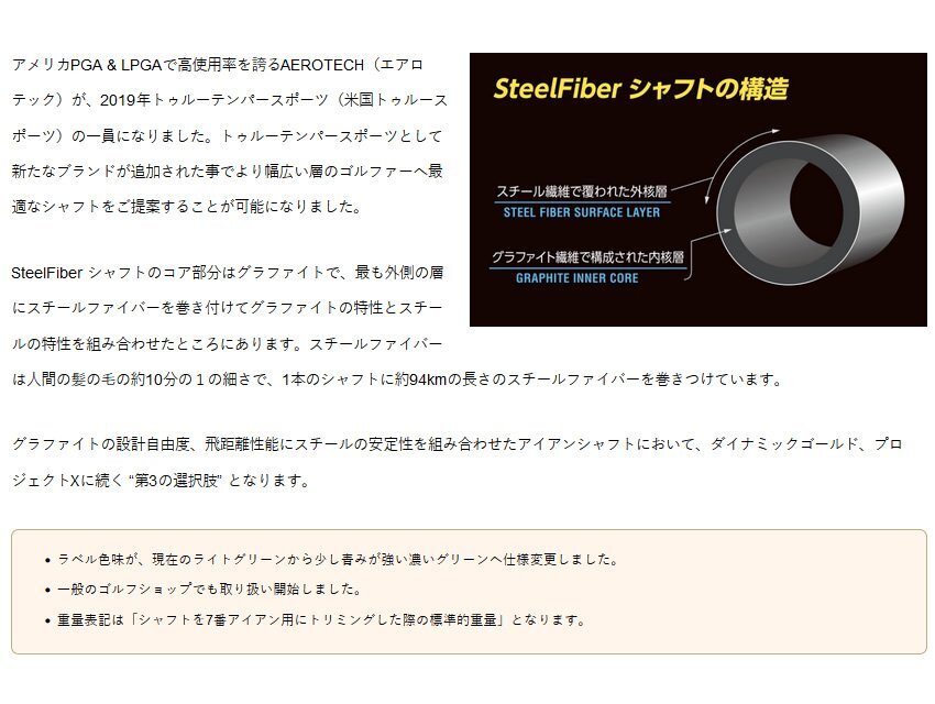 新品 トゥルーテンパー エアロテック SteelFiber h-TOUR 75 (S) アイアン用 パラレル 41インチ スチールファイバー シャフト単品 日本仕様 |