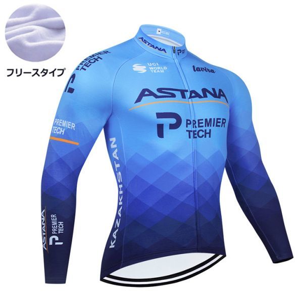 新品 長袖 裏起毛 サイクルジャージ No89 Mサイズ カザフスタン フルジップ ウェア メンズ サイクリング フリース ロードバイク MTB