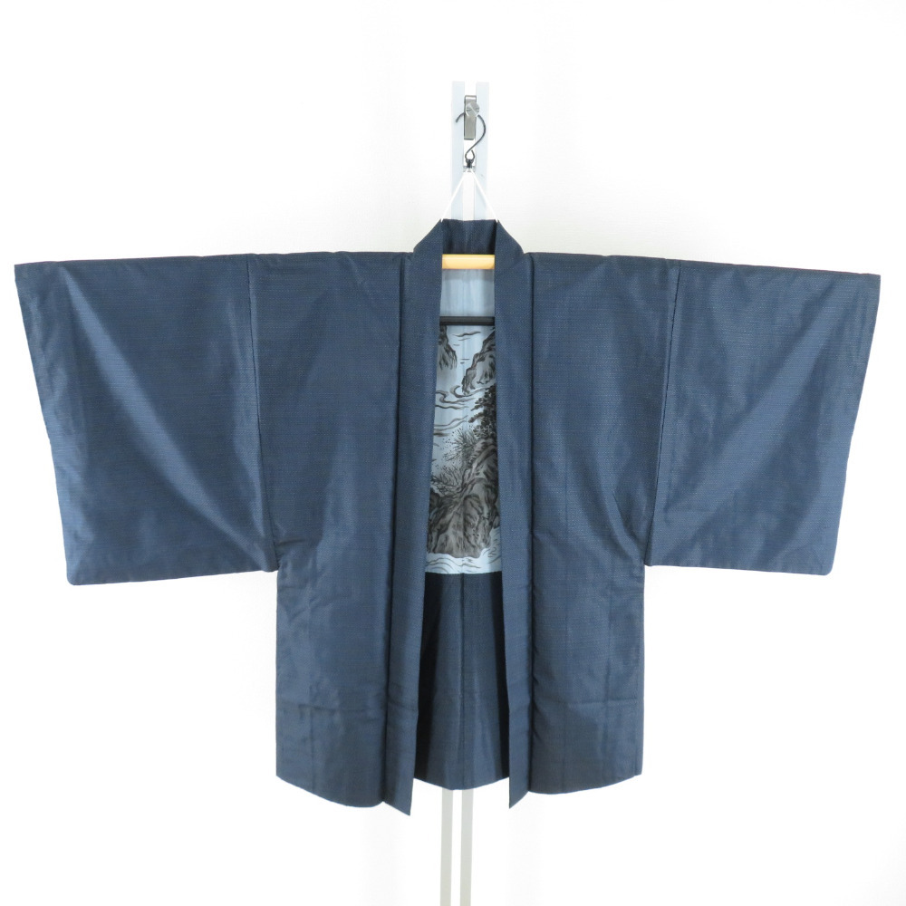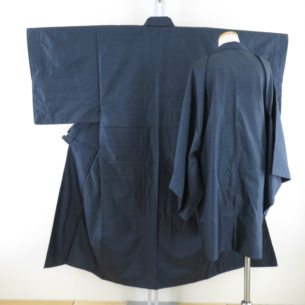 | 男着物 紬 亀甲 アンサンブル 袷 紺色 正絹 男性用きもの メンズ 仕立て上がり 和服 男物 カジュアル 身丈137cm |