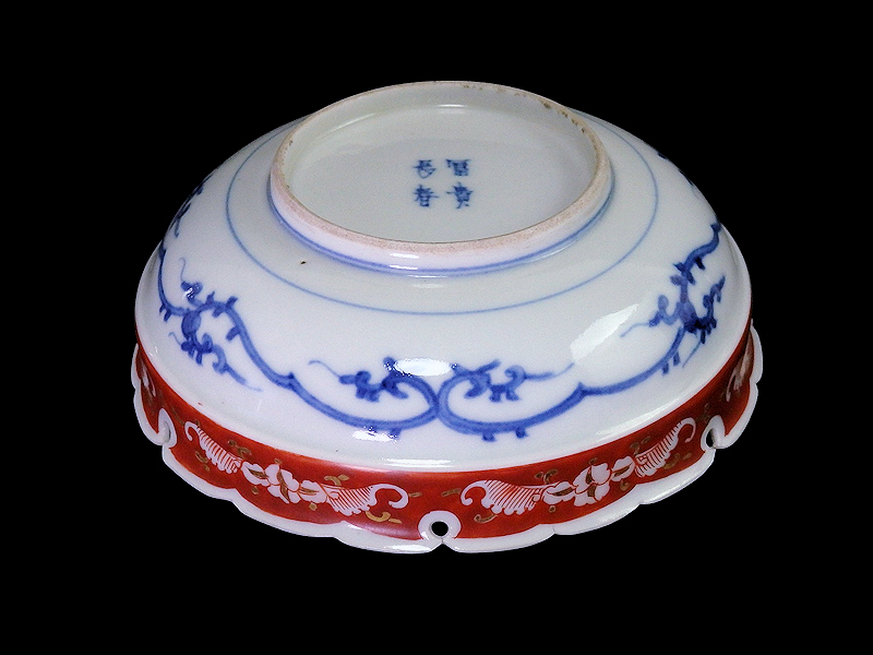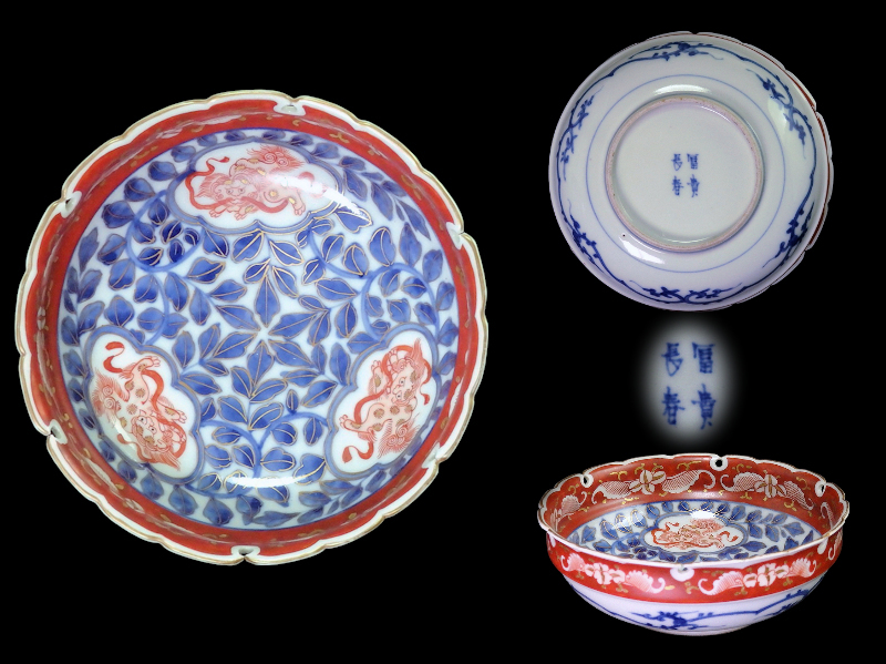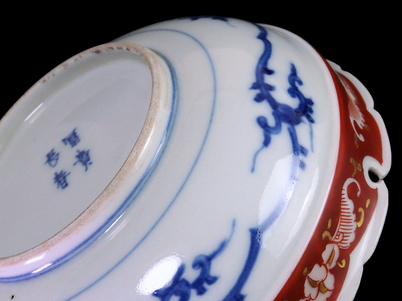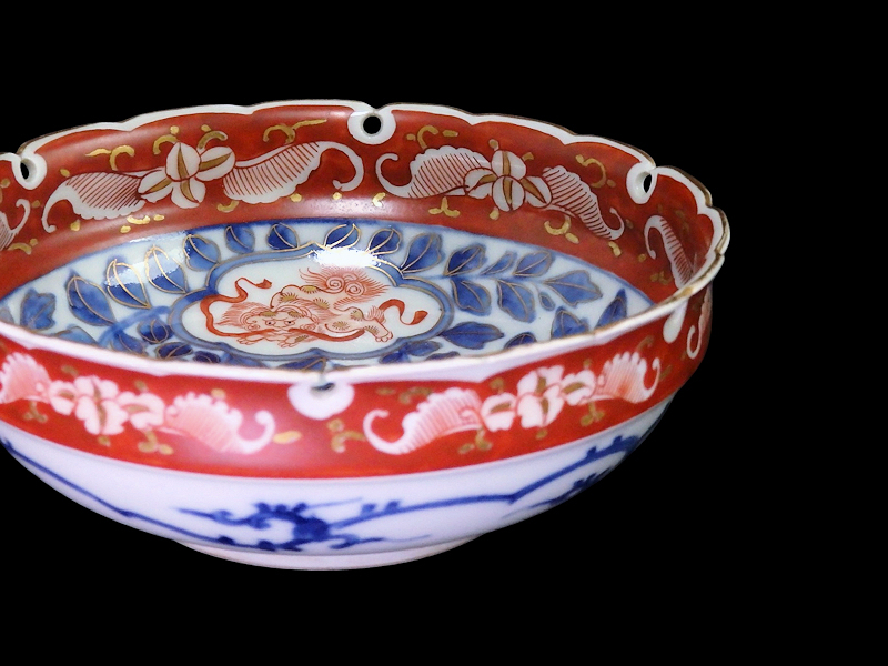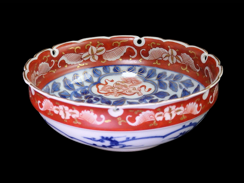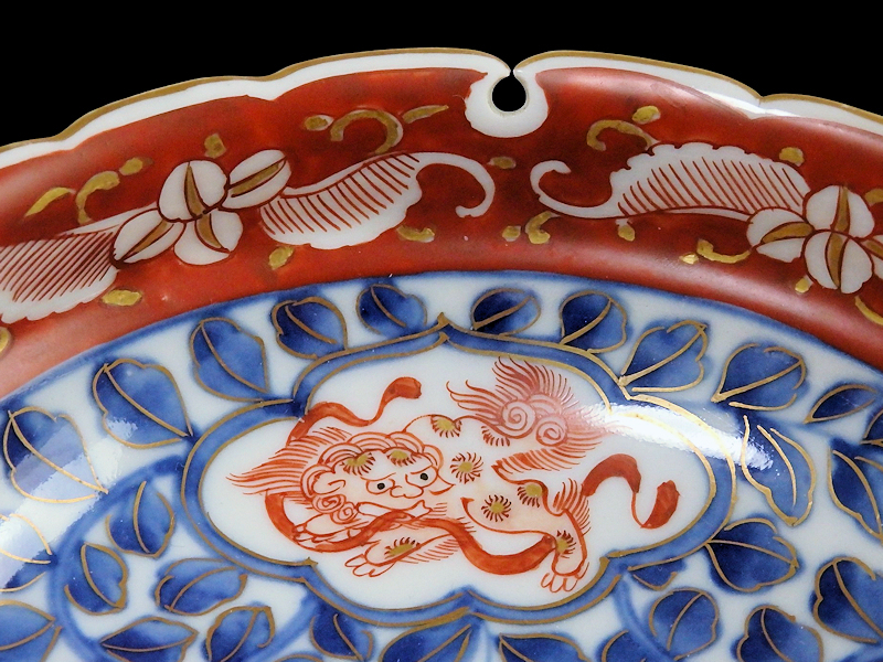 ★華心★ CTj-165mS 大聖寺伊万里 染錦 獅子に葉唐草の図 雪輪膾皿