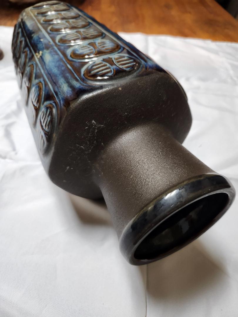 北欧雑貨。 高名なデンマークのSOHOLM製大型花瓶です。 Einar Johansen氏の製作で、花瓶群青色の濃淡と無釉薬の土の風合いが織りなす、重厚で壮麗な花瓶です。 底面に「3347」とシリアルナンバーが入っています。 実家にずっと飾っていた逸品です。 高さ約34×最大直径約15㎝。