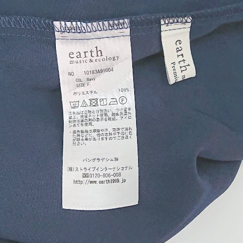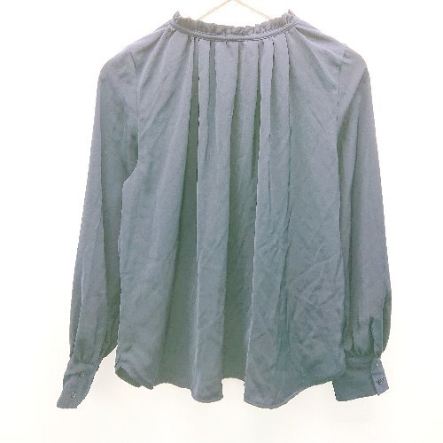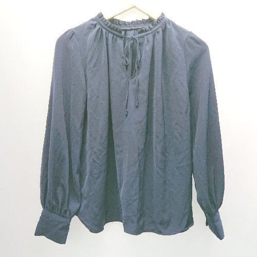 ◇ earth music&ecology フリル ギャザー フェミニン カジュアル シンプル 長袖 ブラウス サイズF ネイビー レディース E