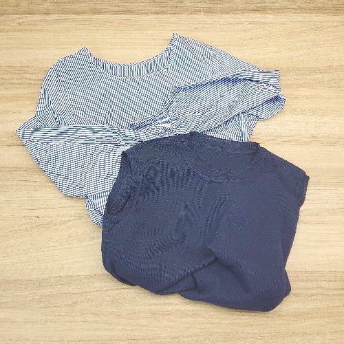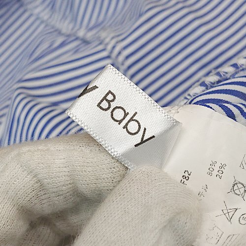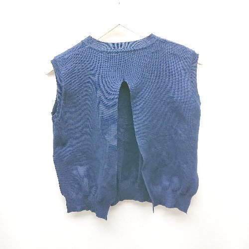 ◇ CANDY BABY バックオープン ストライプ柄 ブラウス ニットベスト サイズF ブルー/ネイビー レディース E