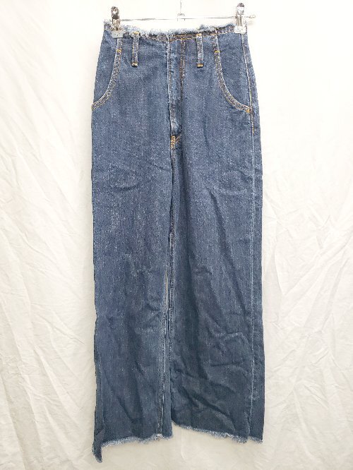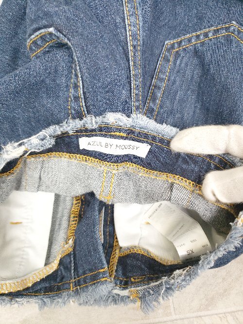 ◇ AZUL BY MOUSSY アズール バイマウジー フリンジ デニム ワイドパンツ サイズXS ネイビー レディース P